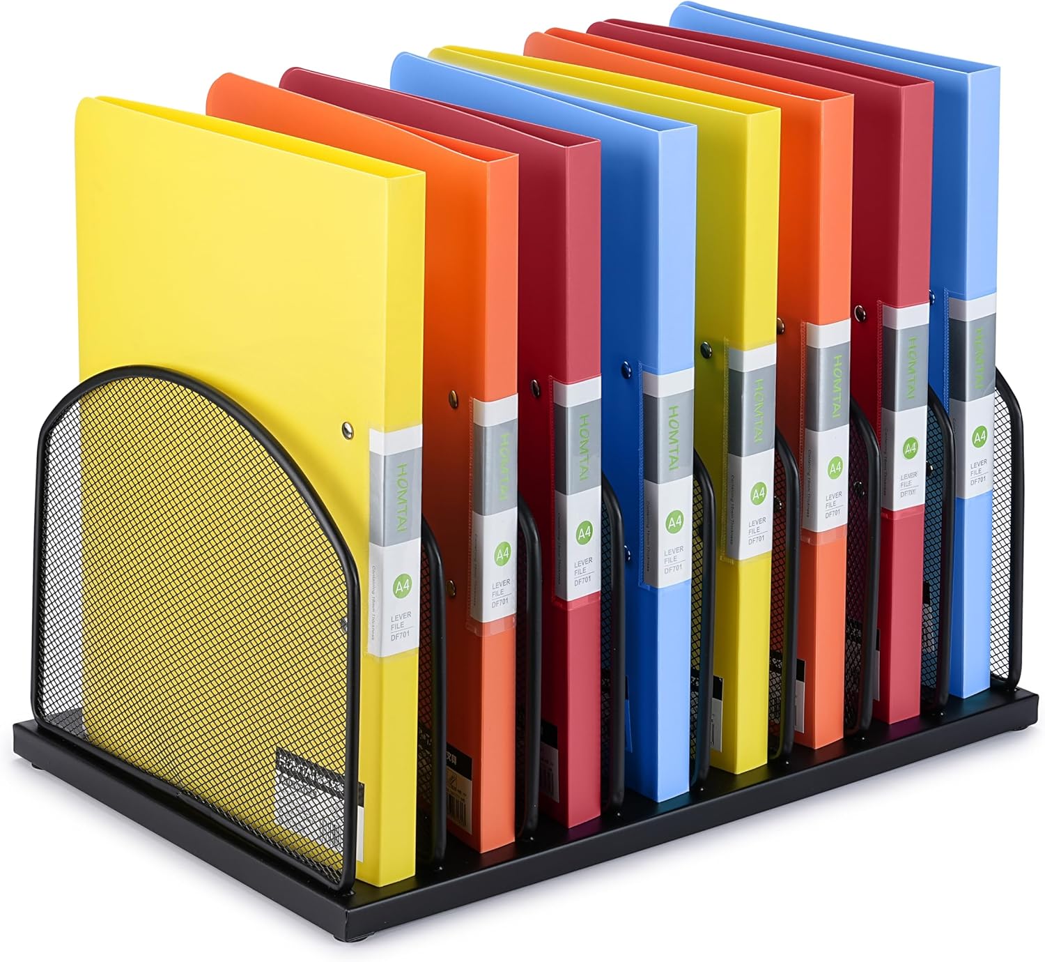 Huron 8-Slot Vertical File Binder Organizer Storage, Black Steel Mesh