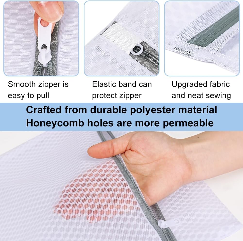 - GENTLE & EFFECTIVE CLEANING - Our durable honeycomb mesh laundry bag is specially designed for gentle cleaning of delicate clothes, preventing wear and tear in washing machines and dryers and prolonging the life of your delicates