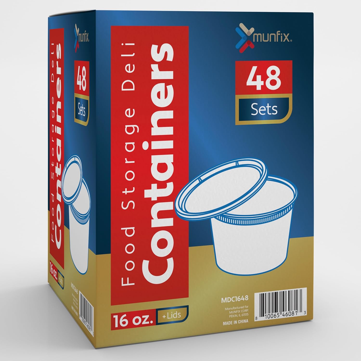 Munfix 48 Pack 16 Oz Plastic Deli Containers with Lids - Food Storage Containers with Lids - Clear Disposable Airtight Meal Prep Containers, BPA Free, Stackable, Leakproof, Microwave and Freezer Safe
