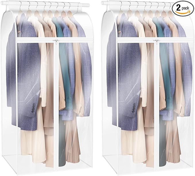 Zilink Hanging Garment Bags for Storage 50 inch (2 Pack) Clear Garment Rack Cover Fur Coat Bags for Closet Storage for Suit Fur Coats Leather Jackets Dress Storage