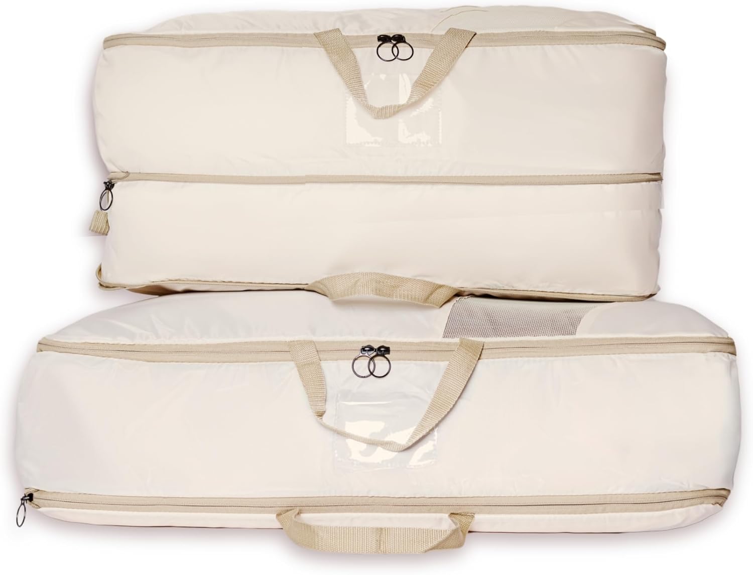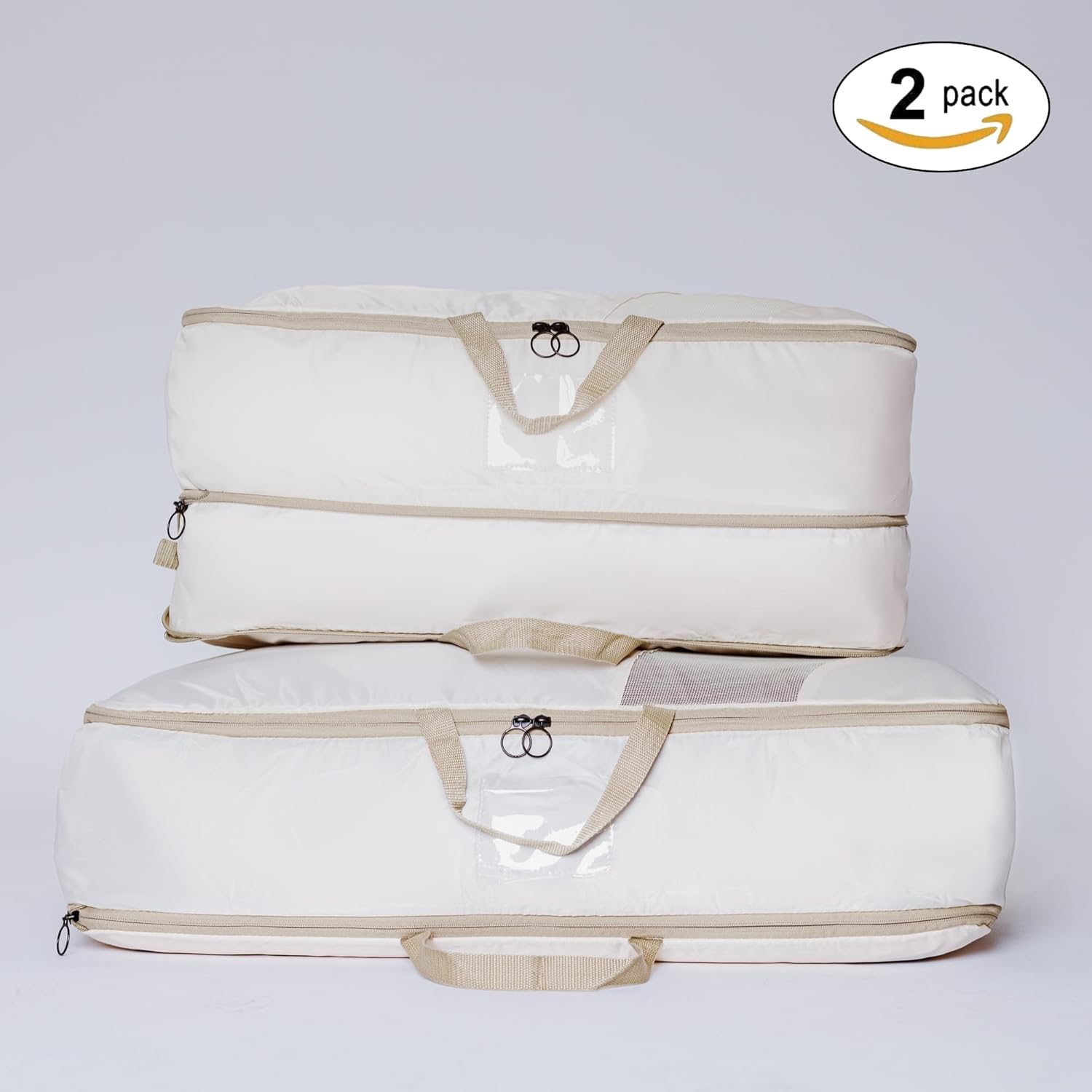 2-pack XXL Comforter Storage Bag - Space Saving Compression Bag for Pillows, Blankets, Bedding -Collapsible Extra Large Mesh Packing Cube - Queen King (1 Med + 1 Large Combo)