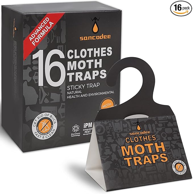 - Moth Trap: Each pack includes 16 traps with strong pheromones to attract clothes moths, offer protection for your wool, cashmere, silk, leather, and cotton garments.