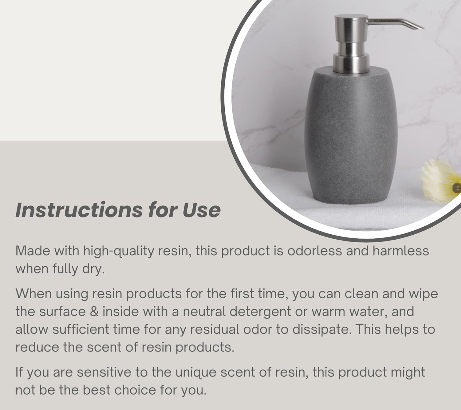 - 【DURABLE & STABLE】Clasin Home poly resin soap dispensers are crafted from a unique material known for its durability and sturdiness, making it less likely to damage or shatter compared to glass or ceramic dispensers. Its pump has undergone a 5,000-press durability test, ensuring long-lasting performance.