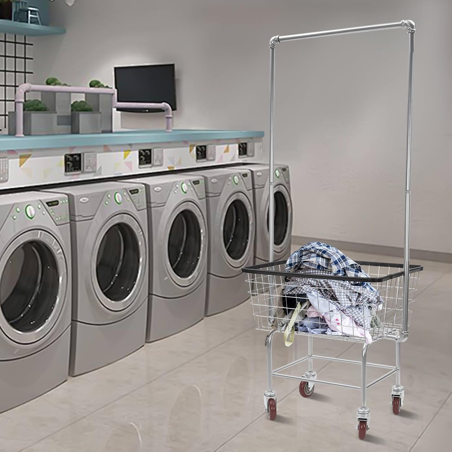 Wire Laundry Basket with Wheels,Commercial Laundry Basket Cart,Heavy Duty Rolling Laundry Cart with Rod Rack for Lau-ndry Clothes Storage (Type 1)