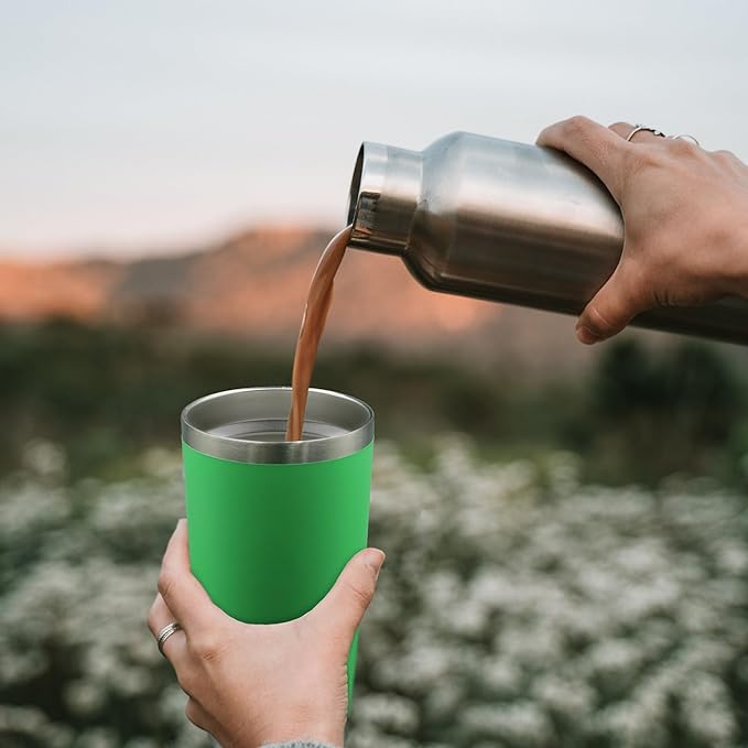 20oz Tumbler Bulk Stainless Steel Tumblers with Lid Vacuum Insulated Double Wall Travel Coffee Mug Powder Coated Tumbler Cup for Hot and Cold Drinks(Green, 1 pack)