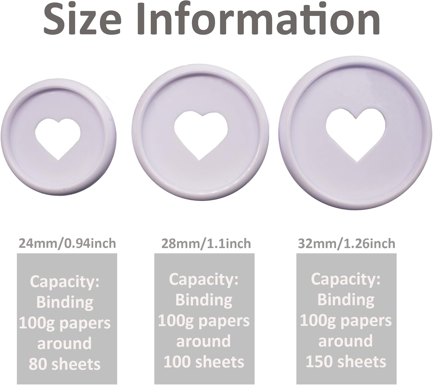 - Dimensions: 0.94 inch(24mm) holds 80 sheets/1.1inch(28mm) holds 100sheets/1.26inch(32mm) holds 150sheets.Our heart discs are compatible with popular discbound notebook systems,discbound planner accessories and covers.
