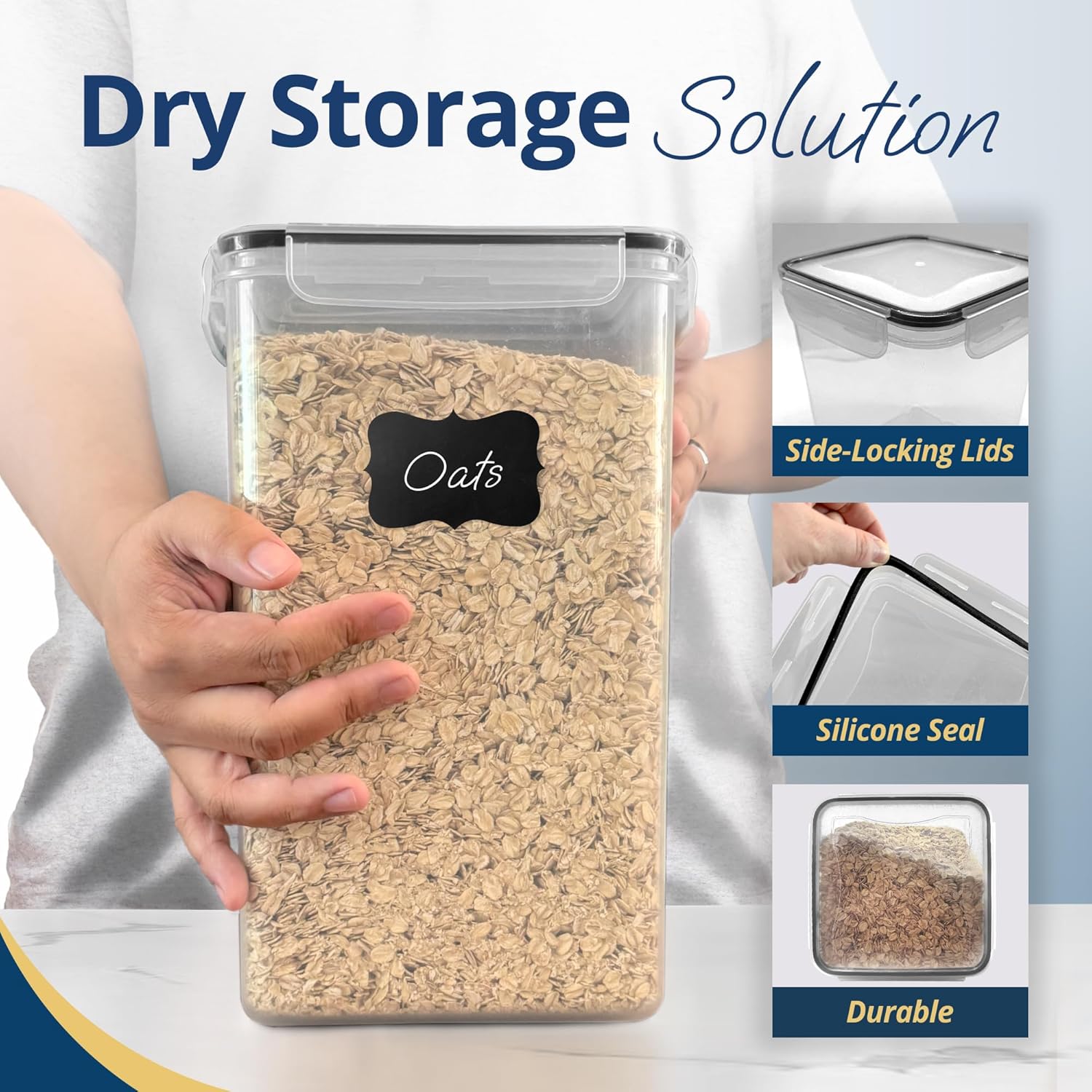 - Stackable & Reusable: Save pantry space with stackable containers! Use the included labels and chalk marker to keep food organized. Wipe with a damp cloth to easily switch contents.