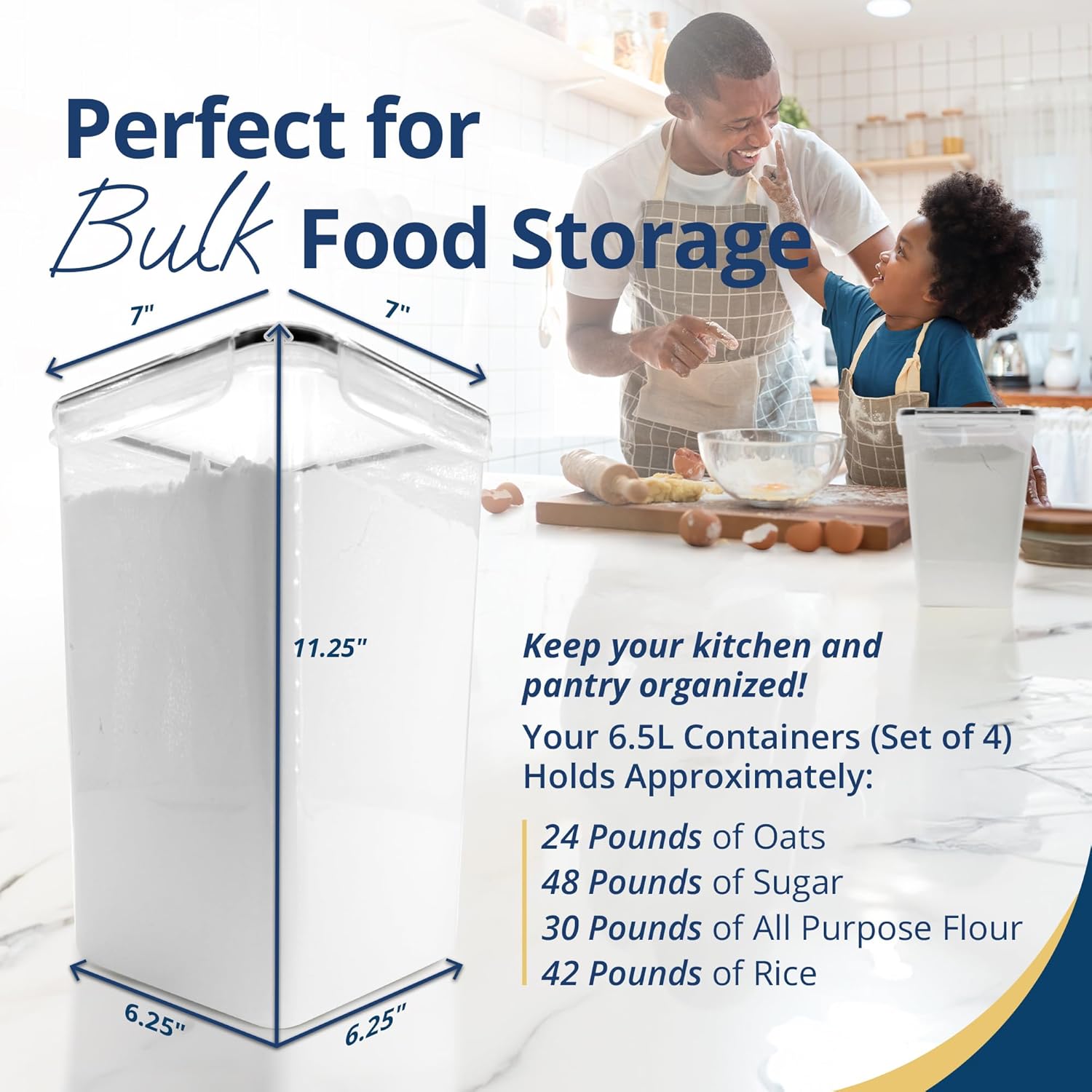 - XL 6.5L Airtight Food Storage Containers with Lids (4 Sets) | BPA-Free, Dishwasher Safe, Leak-Proof, Stackable