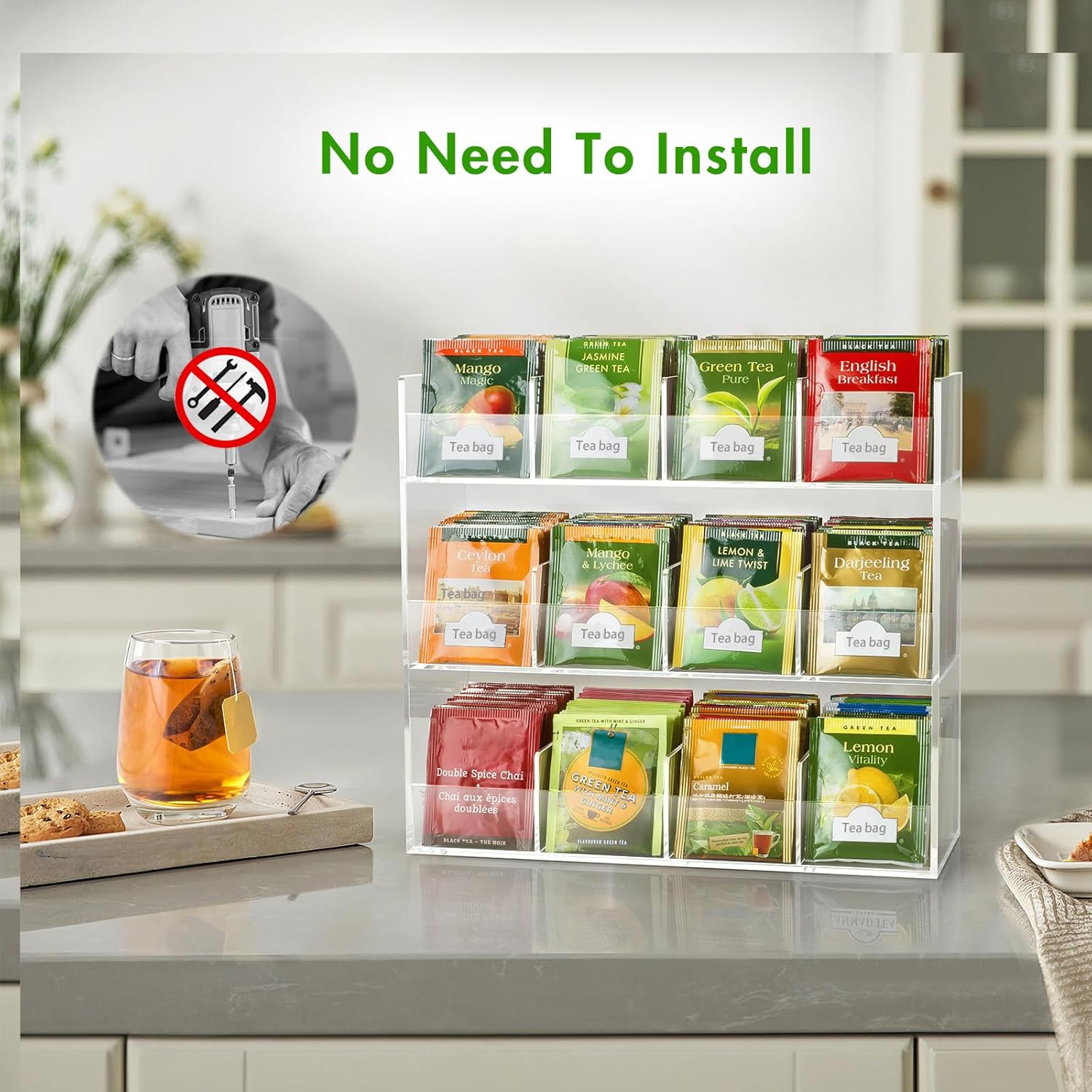 - 【NO ASSEMBLY REQUIRED】- This tea bag holder is ready to use without the need for manual installation. You can avoid spending a lot of time thinking about and installing it. To use it, simply open the product package and place the tea bag inside