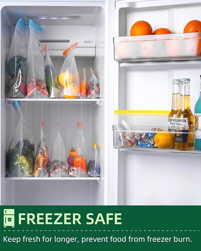 - [FREEZER & DISHWASHER SAFE, MICROWAVE FRIENDLY] Thanks to innovative upgrades to materials, our reusable food storage bags are dishwasher safe and freezer safe. Simply turn the reusable bags inside out and put it in the dishwasher for easy cleaning. They prevent your food from freezer burn while preserving its flavor, perfect for freezing meat, fish, shrimp, and vegetables. Please allow steam to escape when microwaving and don't microwave for more than 1 minute.
