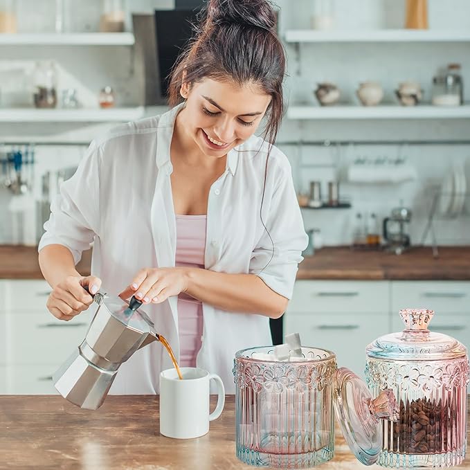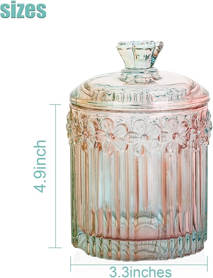 - Multifunctional Storage: Clear glass jar with lid dispenser for such as Q-tip, cotton balls, cotton swabs, cotton rounds, floss picks, tampons, bath salts, hair tie band, makeup brush, beauty egg, face brush, crayons, candy, pens, clip, and more small things