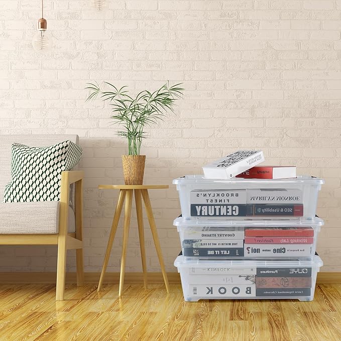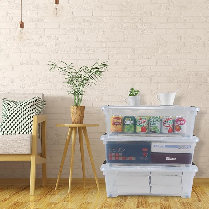 Hespama 3 Pack Plastic Storage Boxes with Lids, 20 Quart Rolling Plastic Bins for Under the Bed