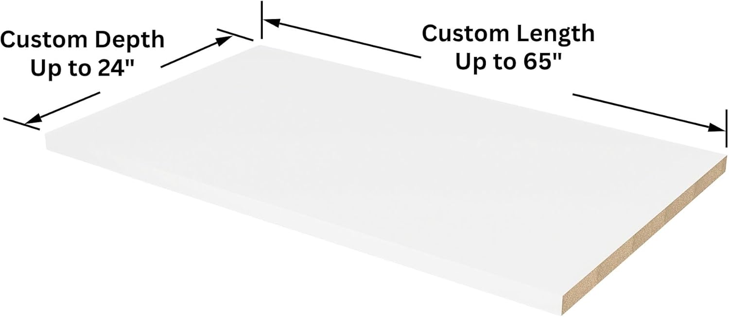 Custom Shelves, 3/4"" Thick Melamine, Cut to Size, Fully Customizable up to 65 inches Wide and up to 24 inches deep. for Cabinets, Closets, or Anywhere