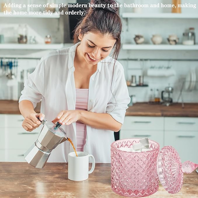 - Perfect choice: These crystal jars can be placed on the bathroom countertop, guest bath, vanity top, laundry room, makeup table, nightstand, lazy Susan, or dining room table. Ideal for your friends, family, and relatives on many occasions, such as birthdays, housewarmings, weddings, Thanksgiving, Halloween, and Christmas!