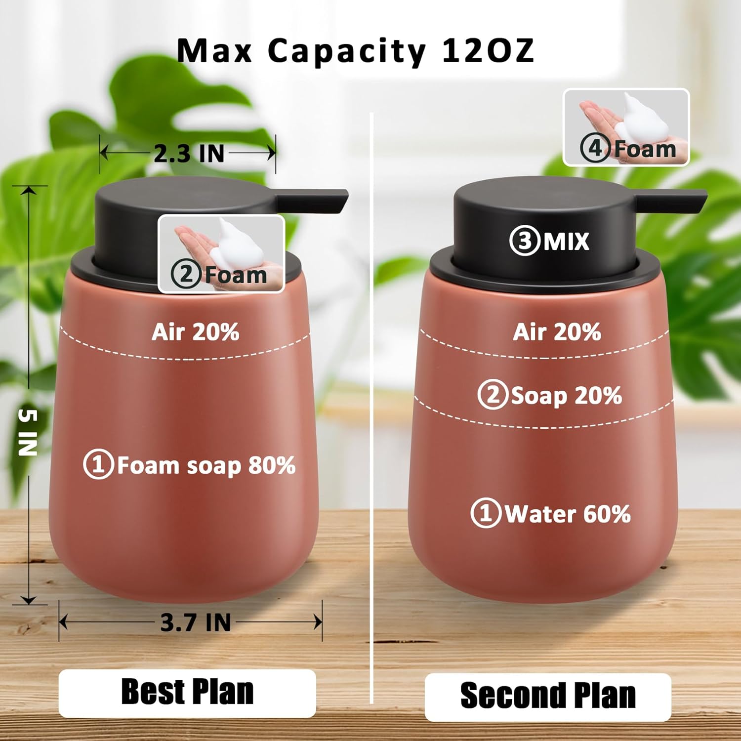 Soap Foaming Dispenser Ceramic with Easy-to-Press Pump Hand Foam Dispenser for Shampoo Bathroom Kitchen 12 oz
