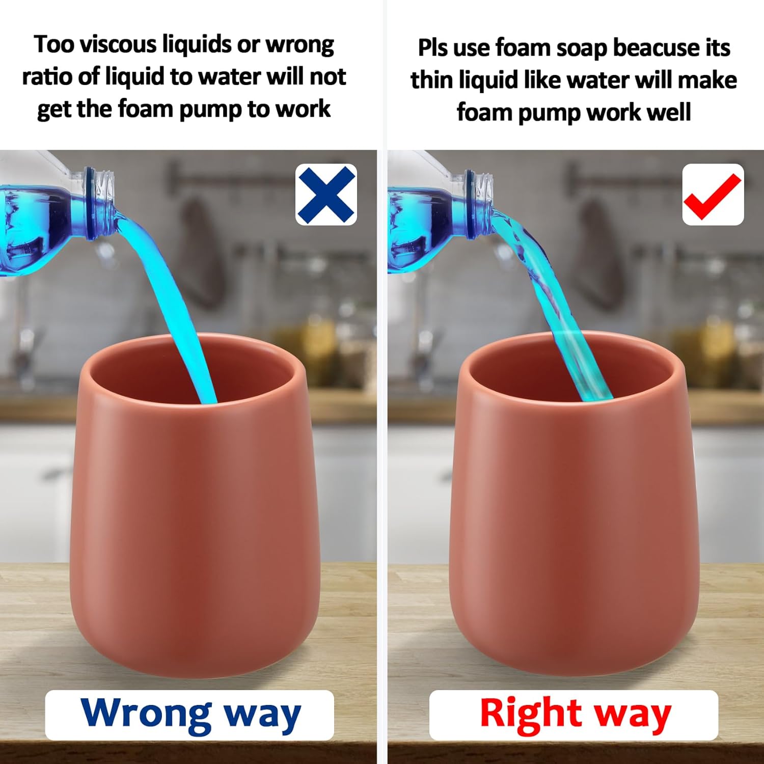 - Easy-to-Press - The Ceramic Hand Soap Dispenser uses a large area press pump made of premium plastic, we can easily squeeze out the Foaming, the nozzle down is not easy to leave excess soap.