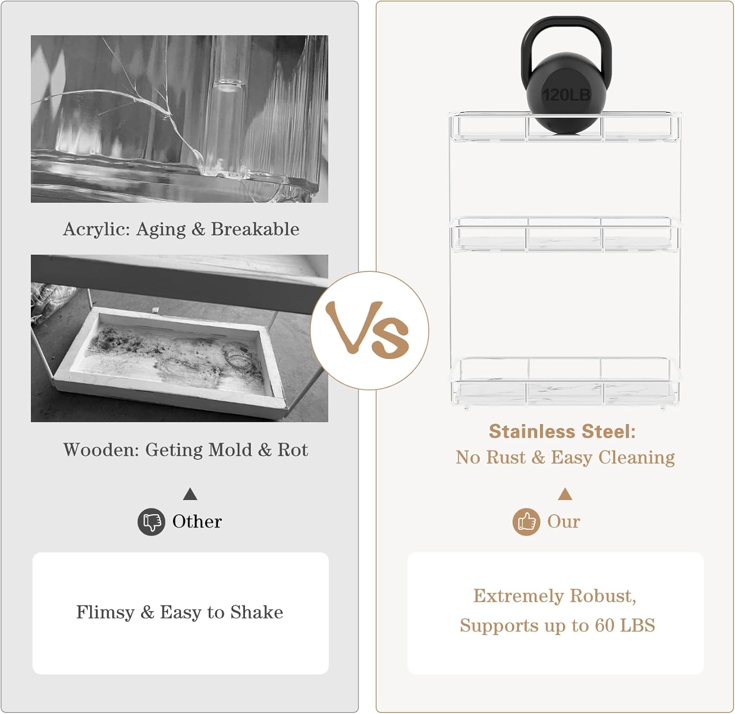 - EASY TO CLEAN: With a sturdy stainless steel frame that can prevent corrosion in wet places and removable ceramic trays with a luxurious marble pattern, this dresser top stand is both functional and easy to clean.