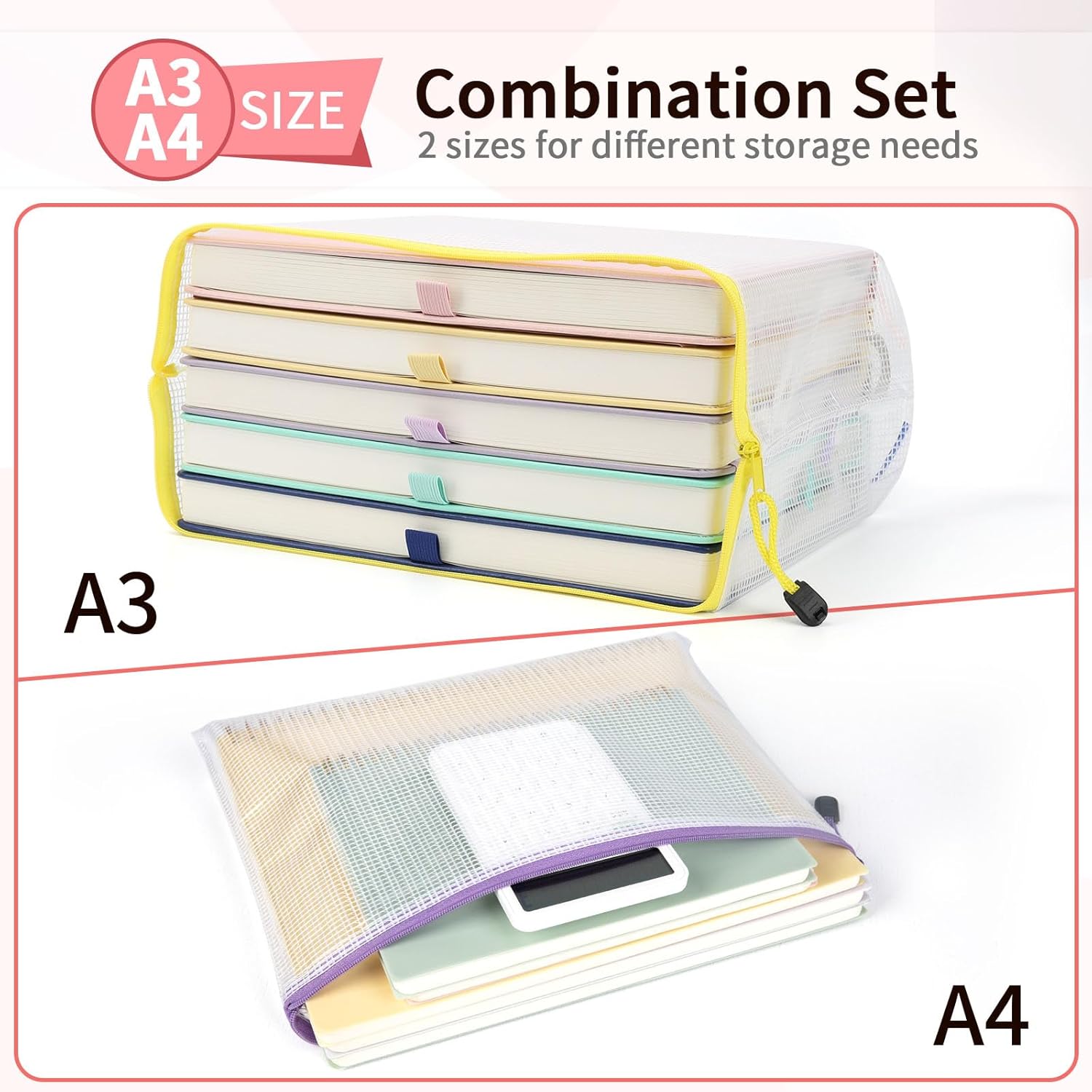 Umriox Mesh Zipper Pouch Bags, A3+A4 (12 Colors, 24 Packs), Large Storage Bags, Zipper Bags for Office Supplies Travel Accessories and Board Games Storage