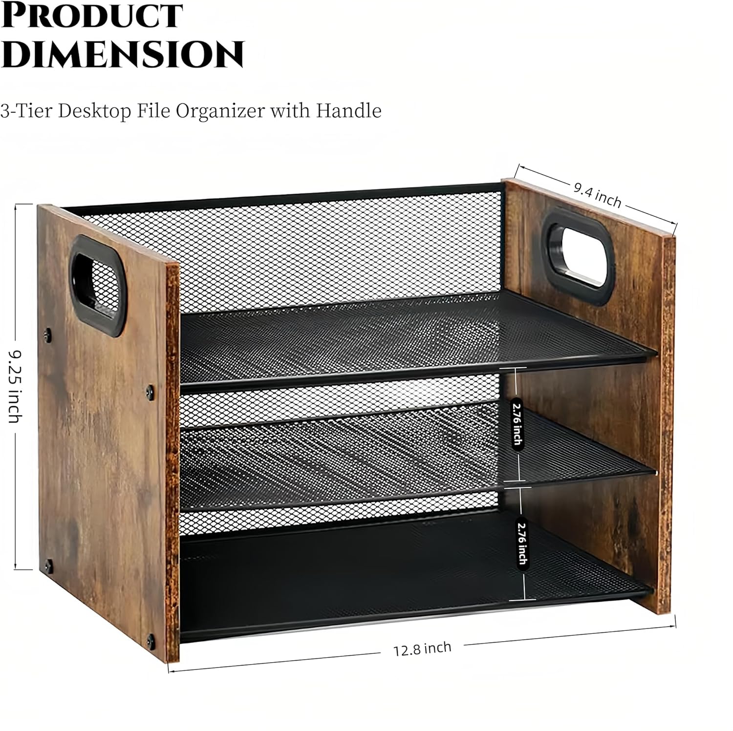 Wood Desk Organizer - 3-Tier Desktop File Organizer, Wooden Paper Tray, Office Desk Organzier and Accessories for Papers, Mail, Notebooks, Stationery