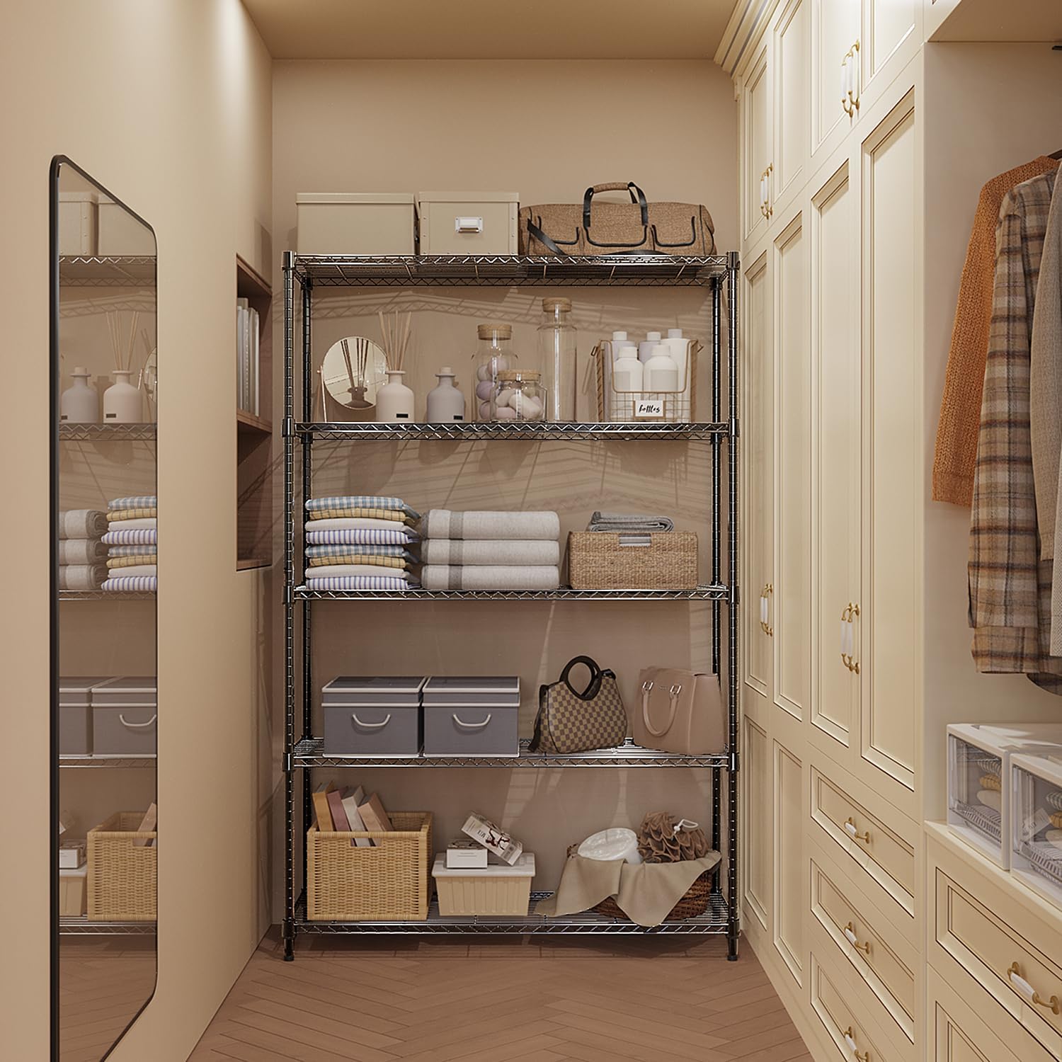 5 Tiers Shelf Metal Storage Shelves Standing 1750 LBs Household Shelf Organizer for Kitchen Pantry Closet Garage Basement Utility Room, Black15.7 D x 45.3" W x 70.4" H