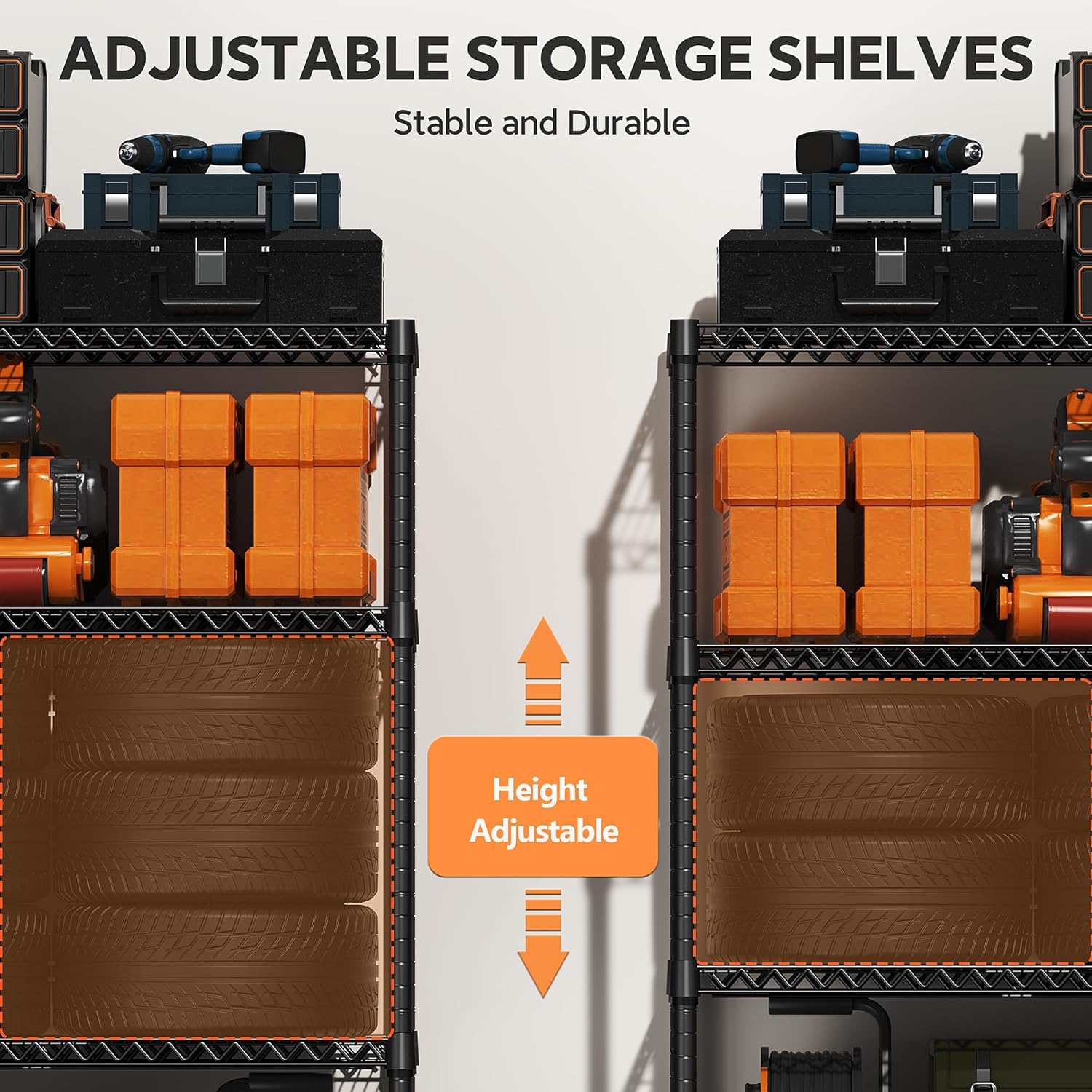 - ADJUSTABLE HEIGHT: Enjoy the option for a completely customizable metal shelving unit. The build allows for height adjustments - giving you the freedom to adjust accordingly to your needs. its coating ensures it is waterproof