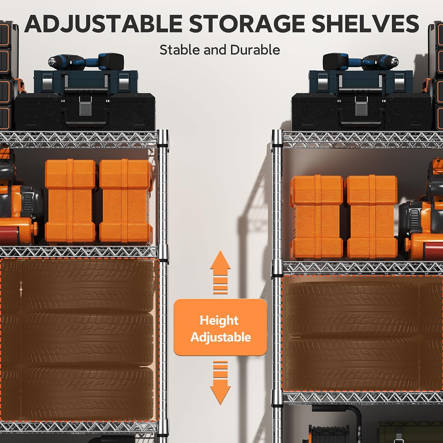 - ADJUSTABLE HEIGHT: Enjoy the option for a completely customizable metal shelving unit. The build allows for height adjustments - giving you the freedom to adjust accordingly to your needs. its coating ensures it is waterproof.
