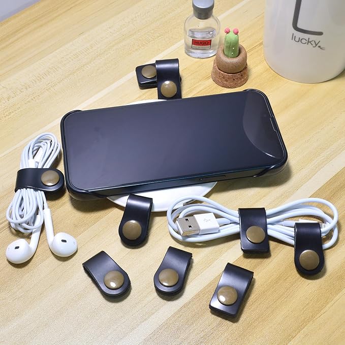 CAILLU Cord Organizer,Cord Keeper,Cable Organizer USB Holder,Cable Straps,Earbud case,wrap Headphone,Headset Winder,Earphone Clips Ties,stocking stuffers for men Gifts Leather