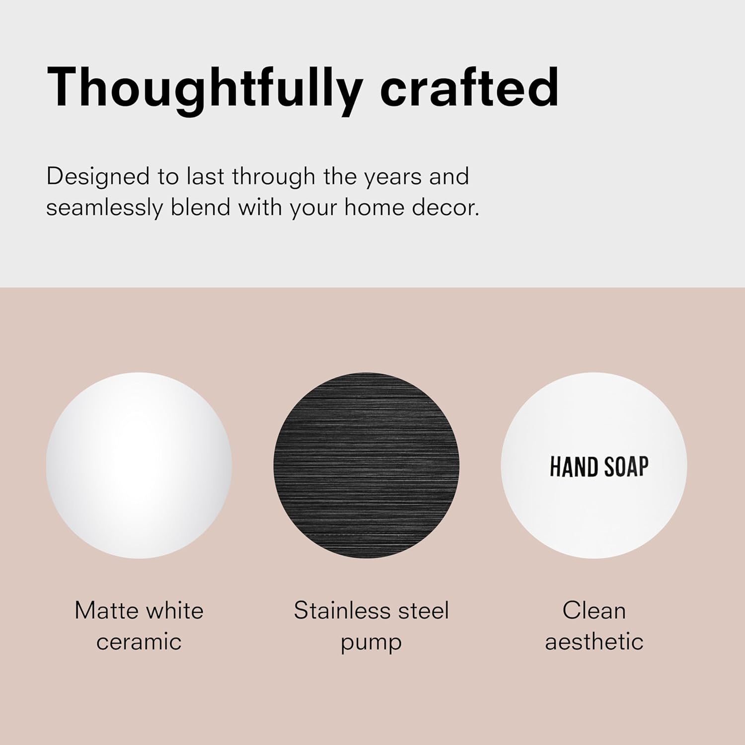 - Clean and Modern - Designed to blend seamlessly with the rest of your home decor, our matte white ceramic soap dispenser is simple in both appearance and function.