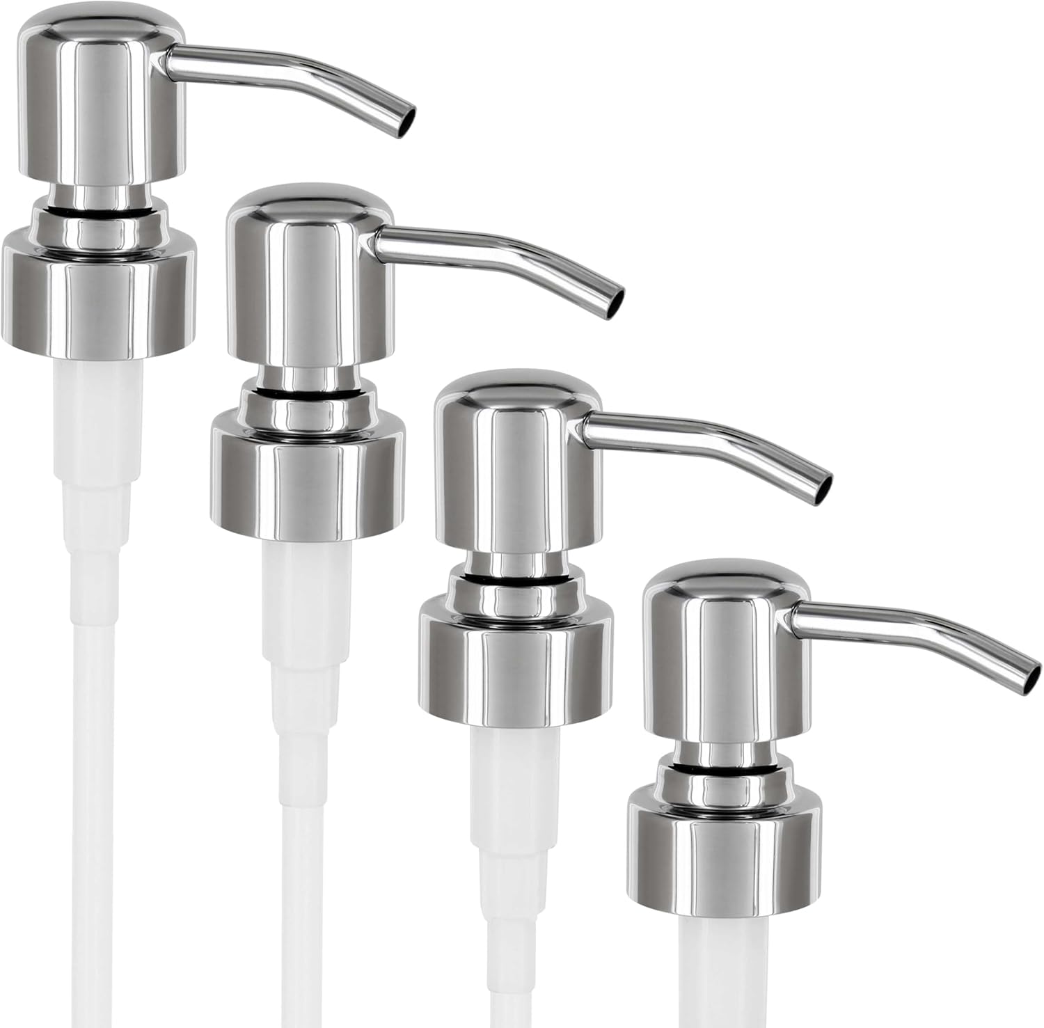 ALTGLAS Four Pack - 4X Stainless Steel Soap Dispenser Pump 'Zagreb' as Replacement for Liquid Hand Soap Bottles (Silver Chrome) - Fits e.g. Jack Bottle