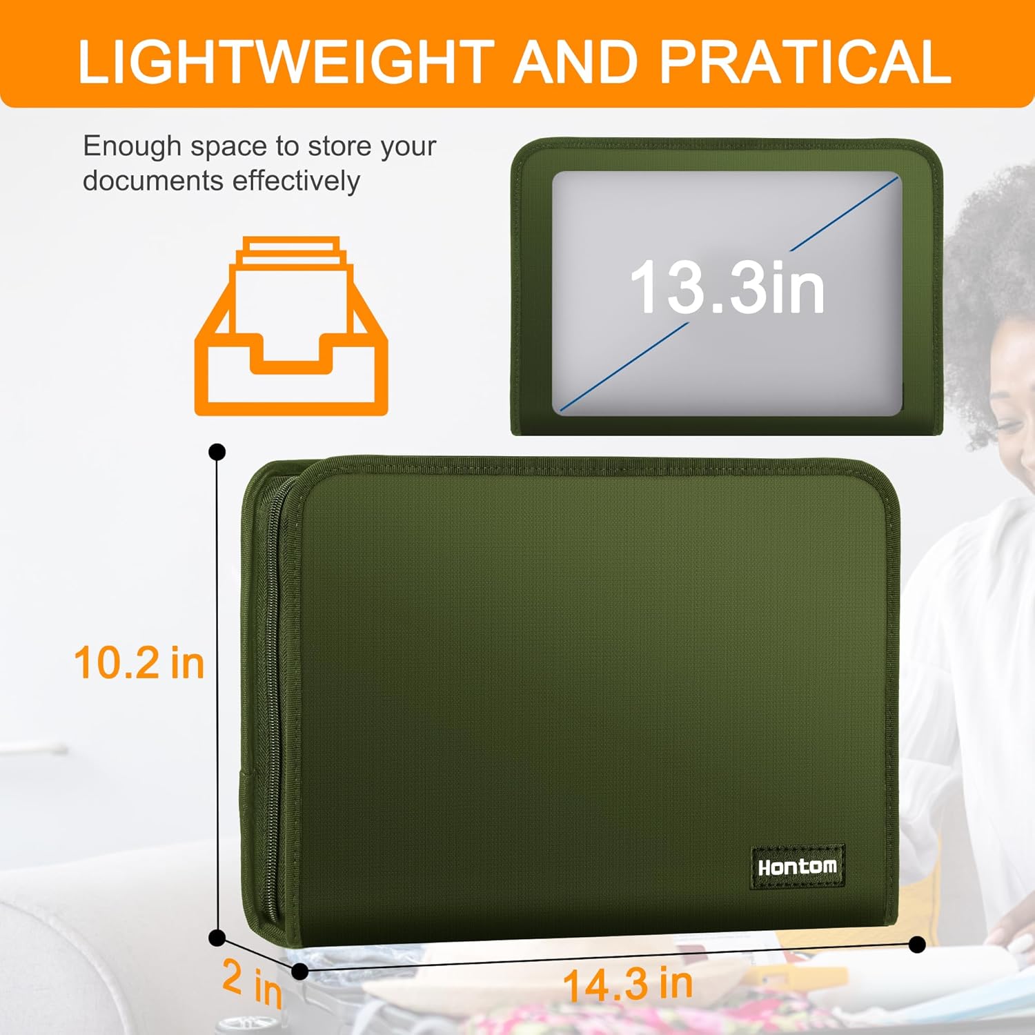 - FIREPROOF SAFE PROTECTION : accordion file organizer are made of 3 layers high quality fire retardant non-itchy silicone coated fiberglass which stands up the temperature up to 2000℉. Document organizer will offer your important documents the max safe protection in case of fire .Important document organizer is also very lightweight, and you can grab it and go in emergency situations