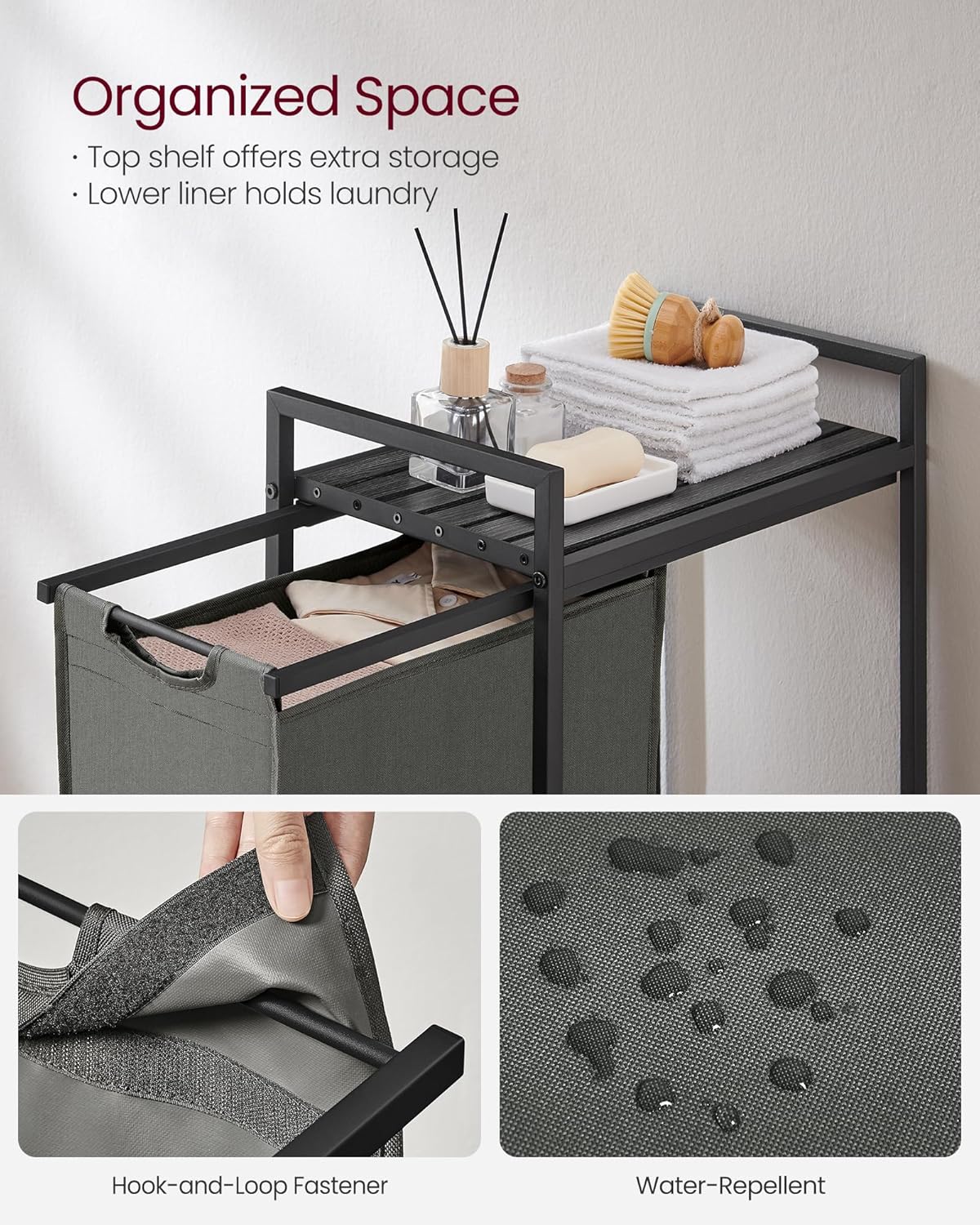 VASAGLE Laundry Hamper, Laundry Basket, Laundry Sorter with a Pull-Out and Removable Bag, Shelf, Metal Frame, 12.4 Gallons (47 L), 16.5 x 11 x 29.5 Inches, Slate Gray and Charcoal Gray UBLH001G01