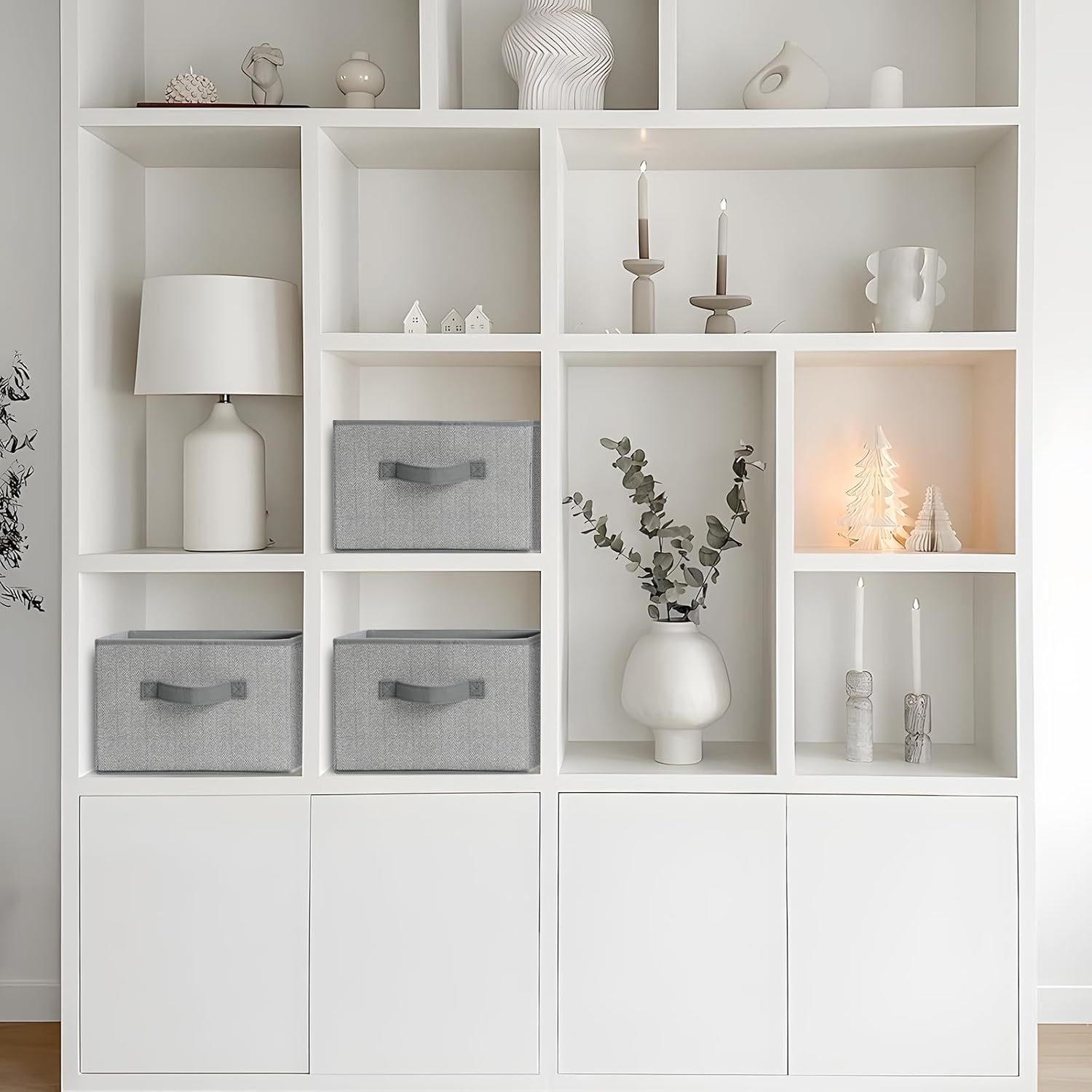 Storage Baskets, 11-Inch Woven Fabric Bins, Storage Cubes with Reinforced Handles, Organizer Bins for Closet Shelves, Foldable, for Toys, Clothes, Natural Beige (3PCS/Grey-11*11*7.8inch)