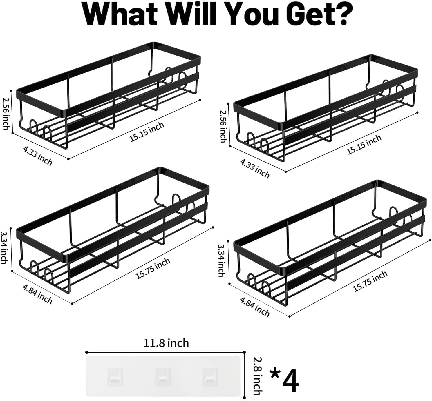 WOWBOX Shower Caddies 4 Pack - Adhesive Hanging Shower Shelf - Bathroom Organizers and Storage, No Drilling Stainless Shower Shelves for Home Decor, Bathroom Accessories (Large)