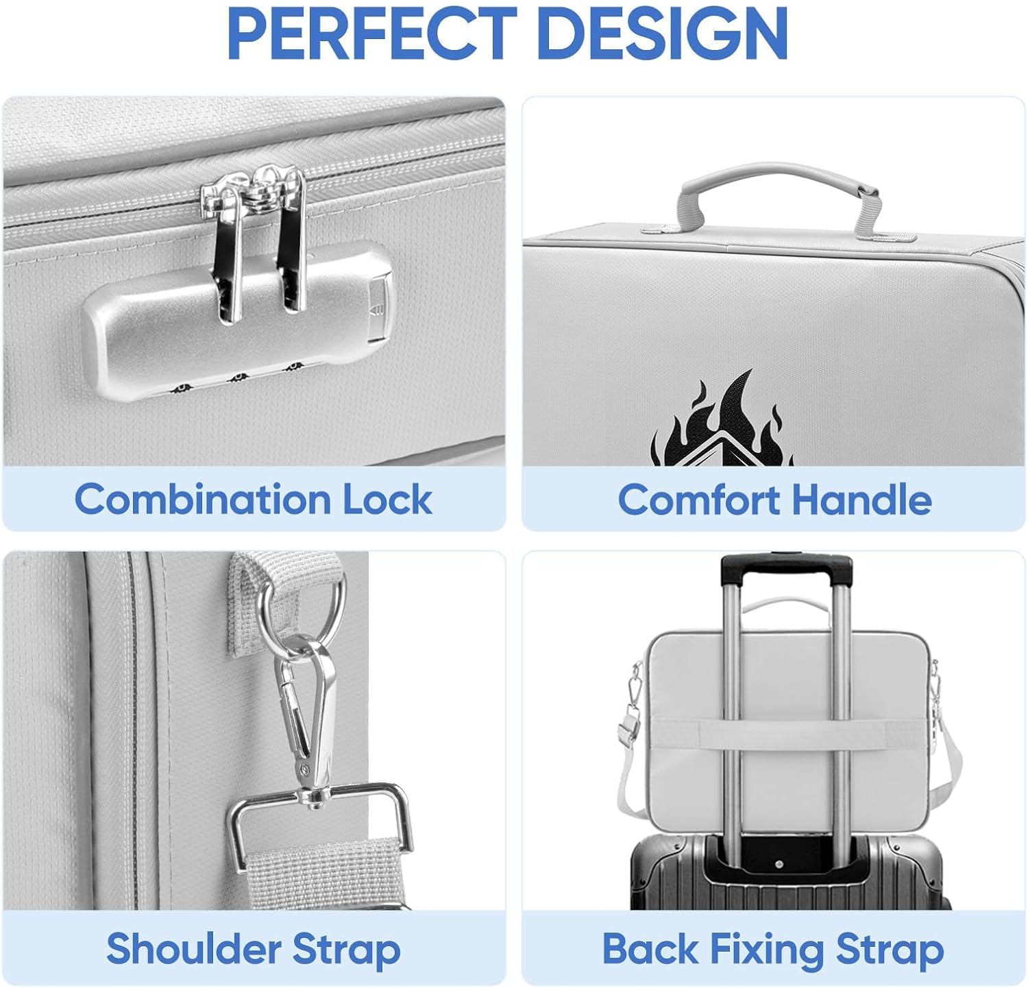 - Fireproof and Waterproof: The fireproof document bag is made of dust-proof silicone fiberglass, offering fire resistance up to 2192℉, SGS-certified (UL94 VTM-0); Its waterproof design protects your documents from rain and spills (No folders included)