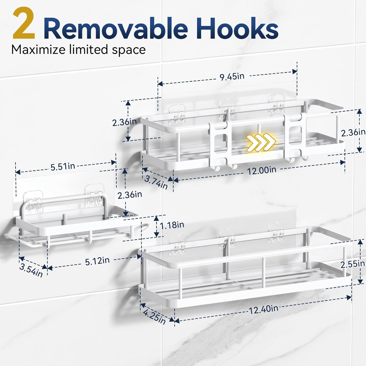 YASONIC Shower Caddy Adhesive, No Drill Bathroom Shower Organizers, with Removable Hooks and Soap Holder, Rust Proof Shower Shelves, Wall-Mounted Shower Holder, White, 3 Pack, YS-K-419E