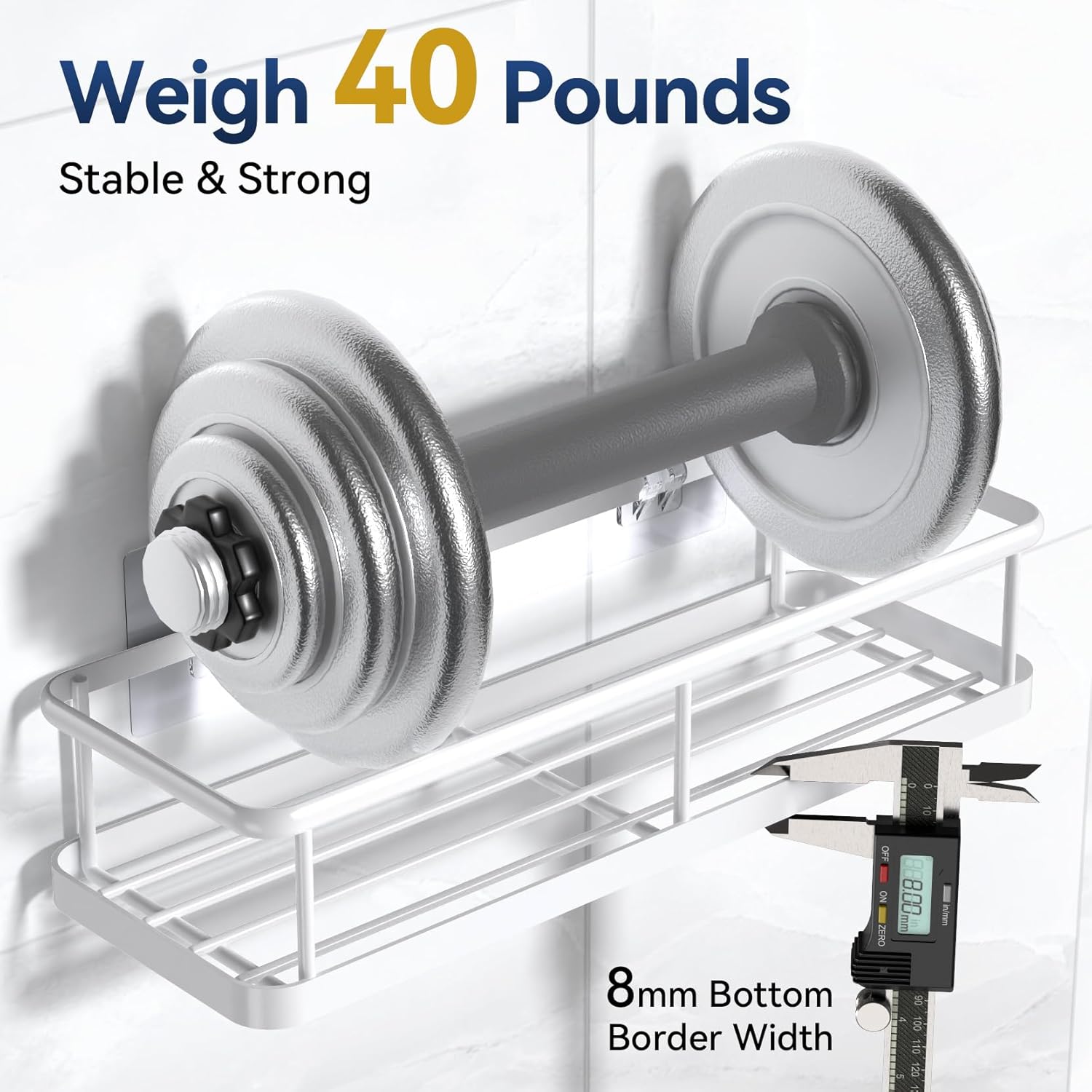 - 【Strong Adhesives, Weight up to 40 Pounds】 - The adhesives of the shower caddy is super strong, allowing the wall-mounted shower holder to hold 40 pounds with greater stability. Keep bottles stably in the shower basket in the bathroom so they are easy access. After installed correctly, there is no need to worry about dropping
