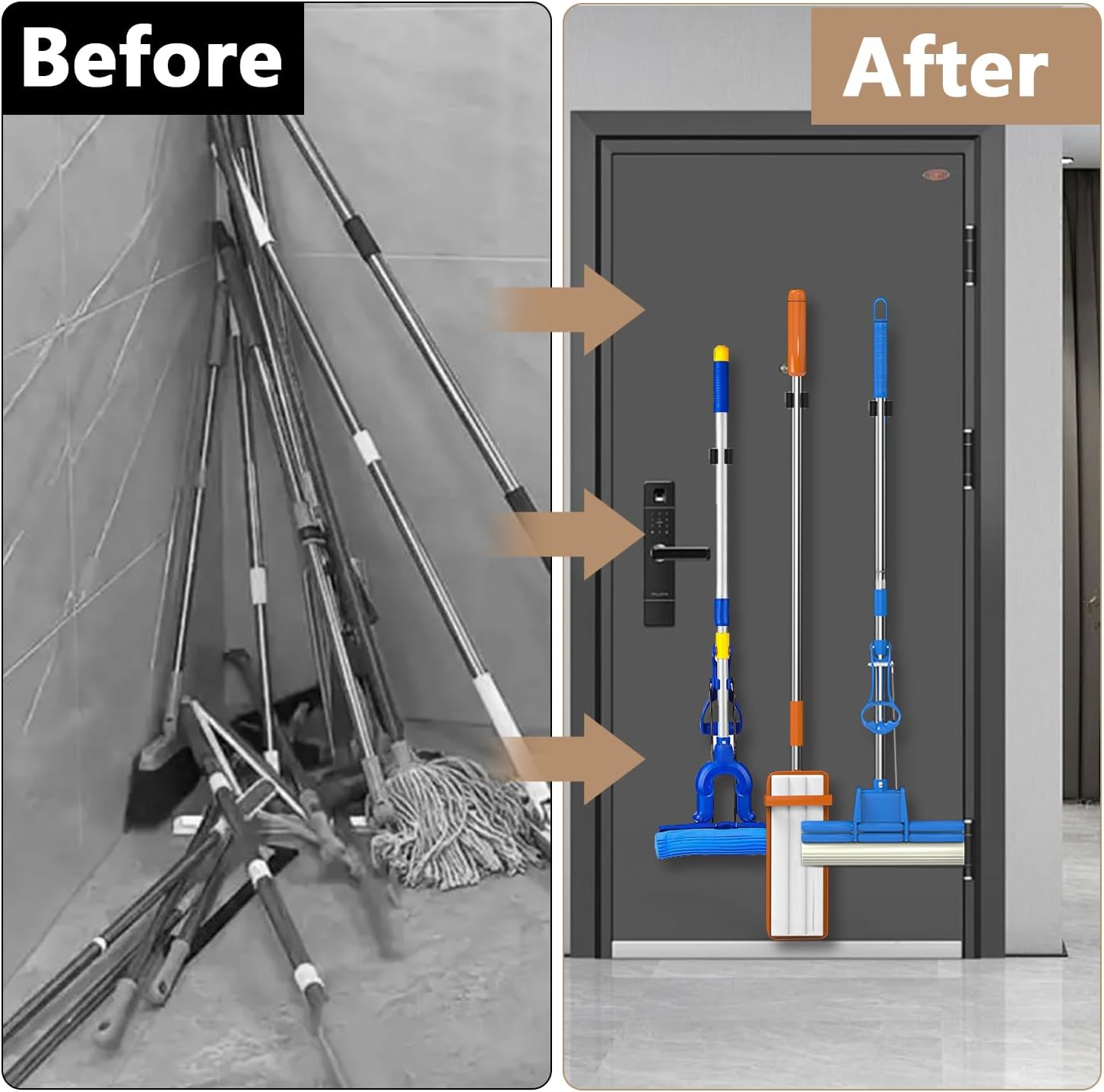 - 🧲[INDOORS OR OUTDOORS ] Using mop and broom holder wall mount tidy up your broom, mop, rakes, tools and more! Perfect for the kitchen, closet, garage, office, great for commercial use, and thanks to the waterproof design, this magnet broom even works outdoors or on the shed for your garden tools when you are using the screws.