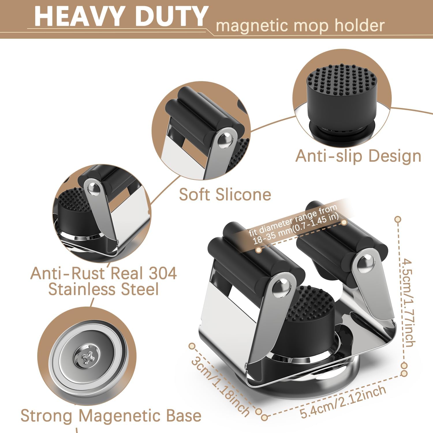 - 🧲[SUPERB STABLE ] With broom and mop holder fit diameter range from 18-35 mm(0.7-1.45 in) by lifting the mop handle, the broom organizer wall mount rolling balls automatically adjust to each broom handle's thickness and grips it securely. silicone grip keeps tool handles away from slipping & scratching,magnetic broom holder heavy duty can grip up to 9 pounds cleaning tools and garden tools