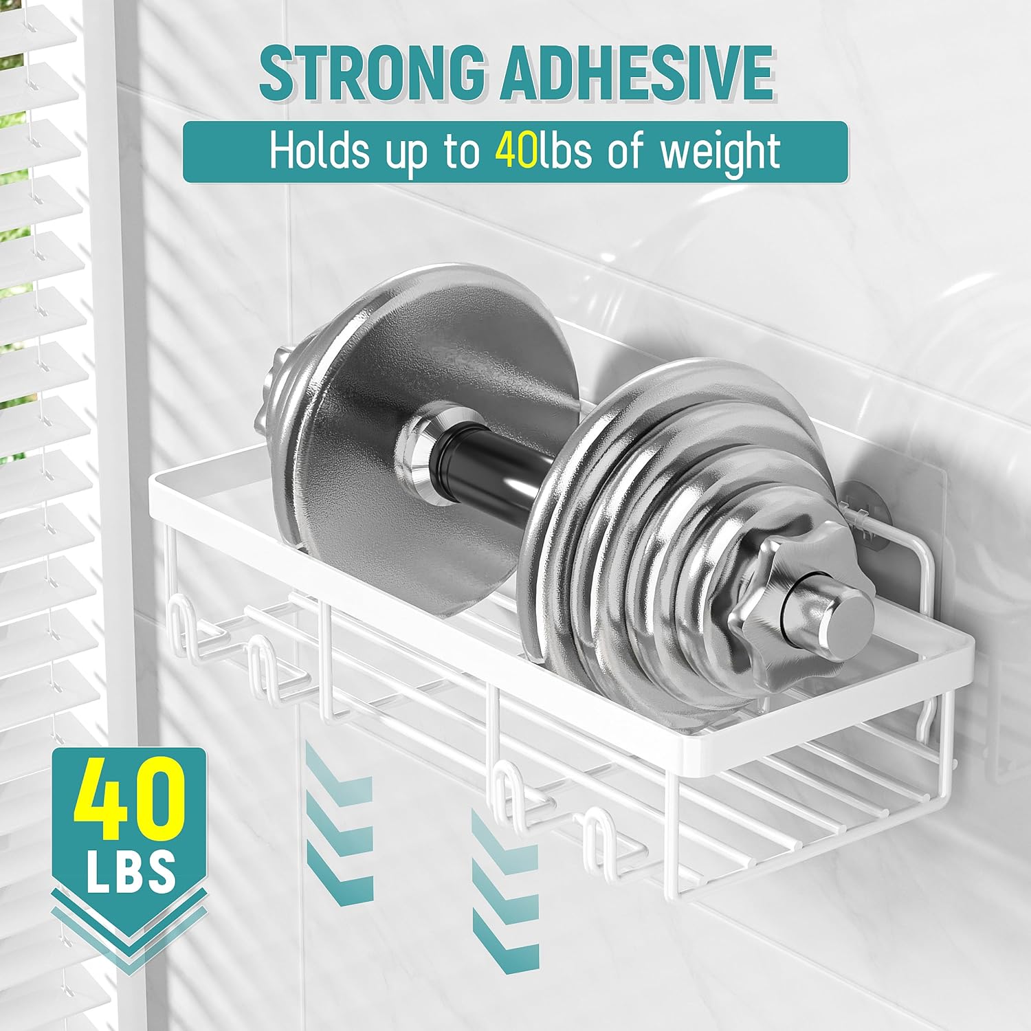 - Strong Adhesive: 1 piece adhesives can stand up with 40 lbs, Keep the tins and bottles in the bathroom shower caddy, and make them easy to fetch and use. Never worry it falling off the wall after stick on the shower racks