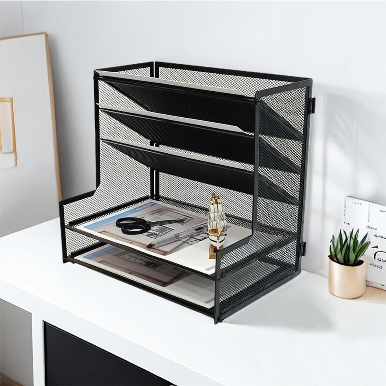 SETTFRFE Office Supplies Desk Organizer,Metal Desktop File Holder Organizer with 5 Tier Paper Tray,Black