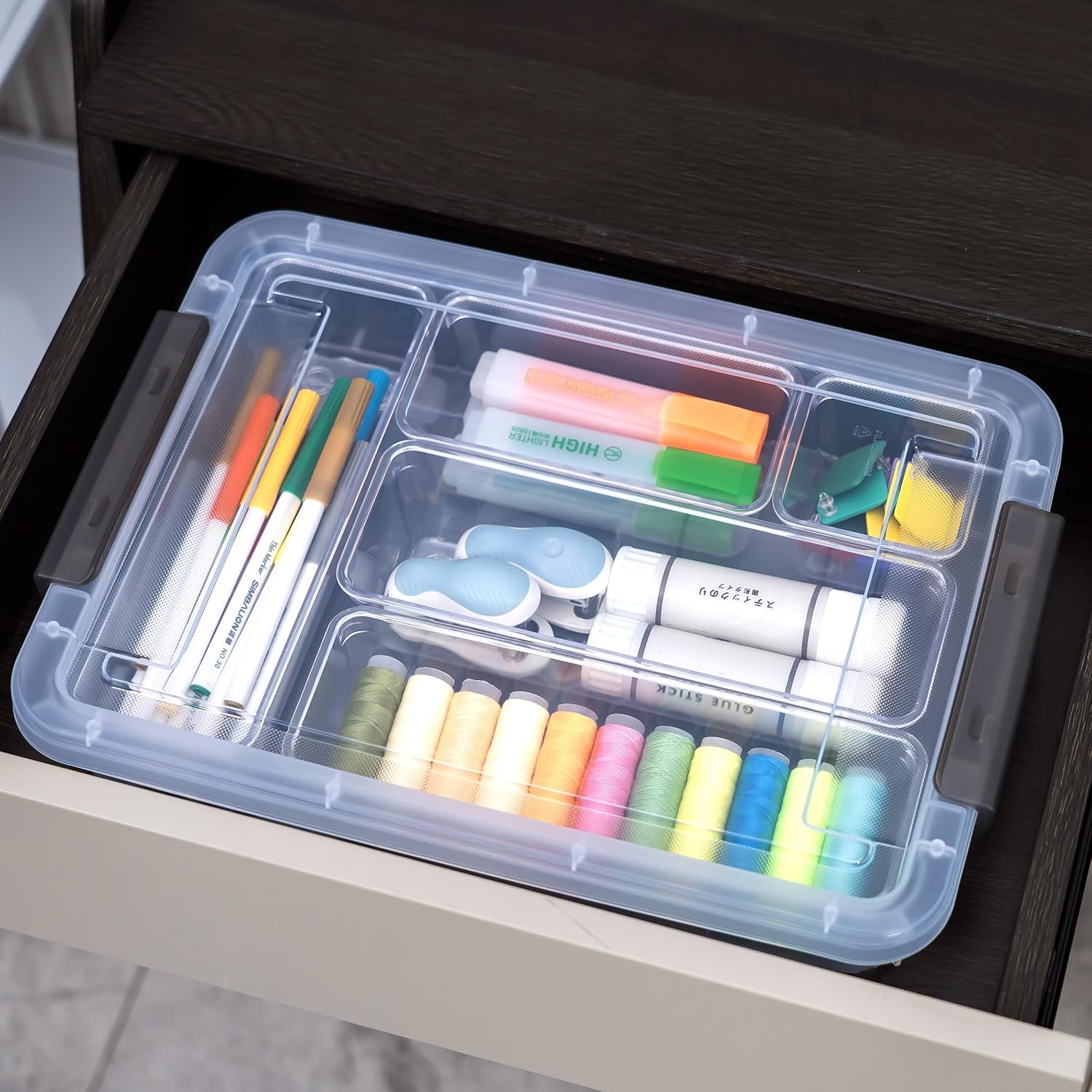 - MULTIFUNCTIONAL: The depth of the small plastic organizer allows you to easily store products in desk and dresser drawers without overfilling them. The different combinations allow you to adjust the size of the drawer and also move it around.