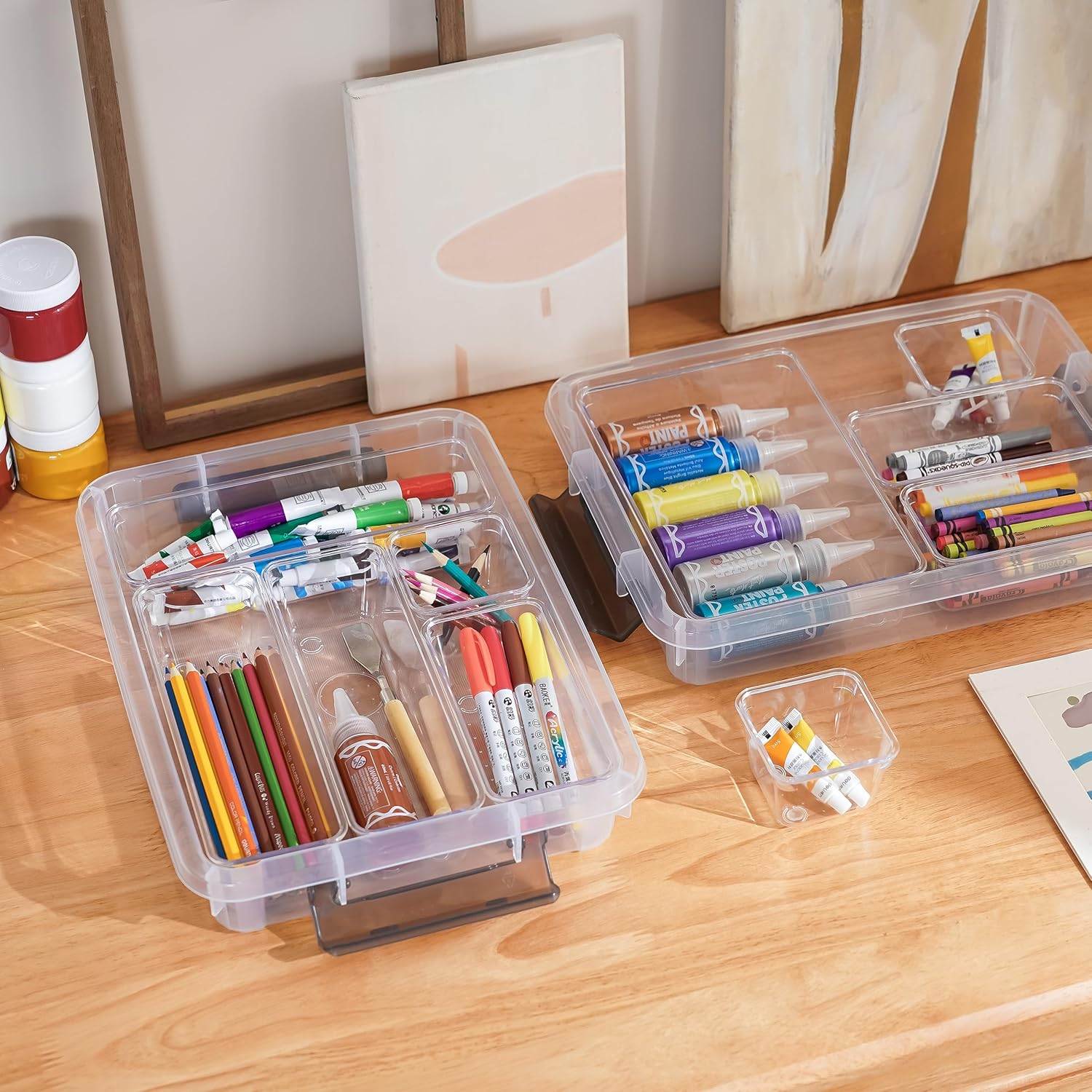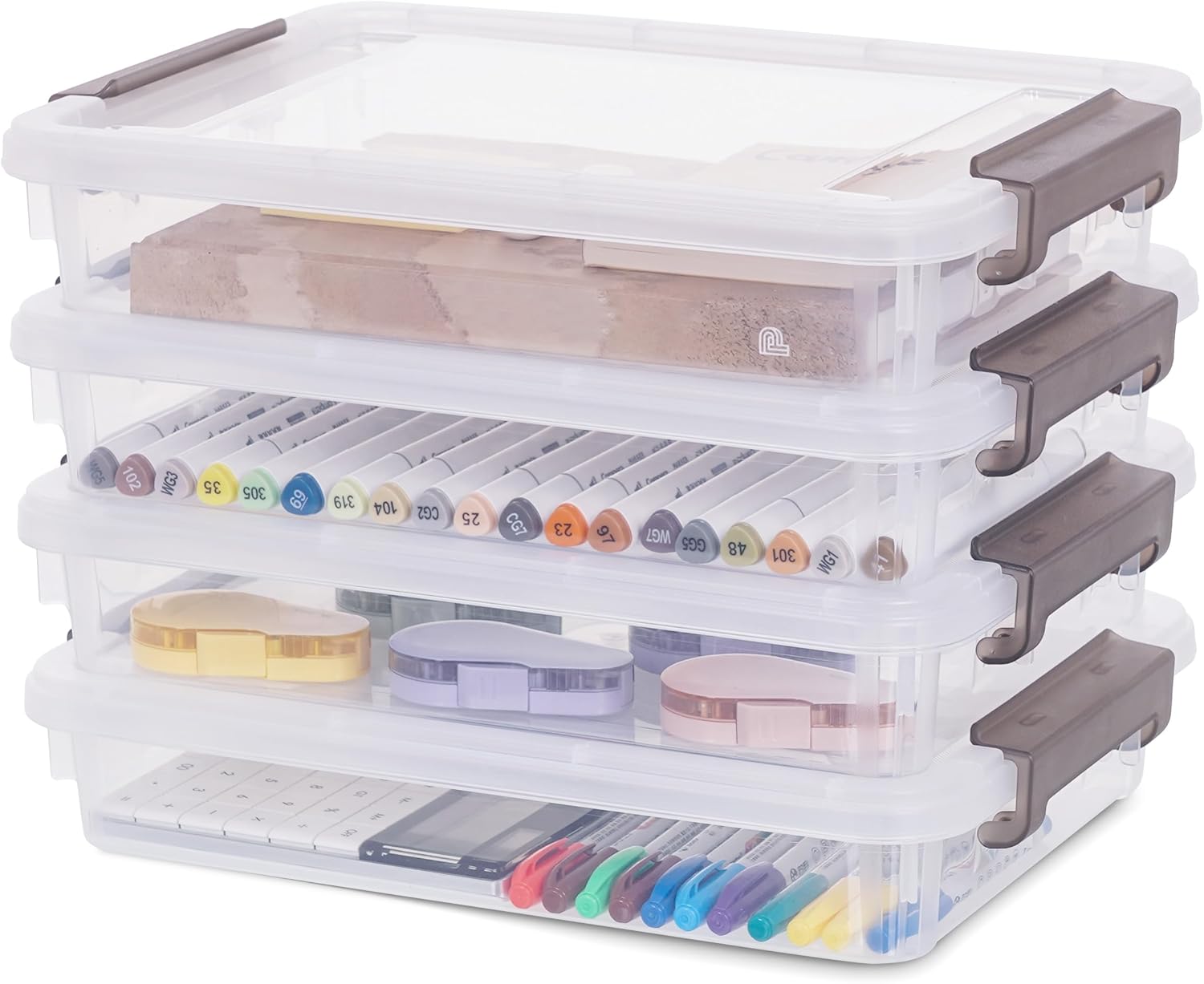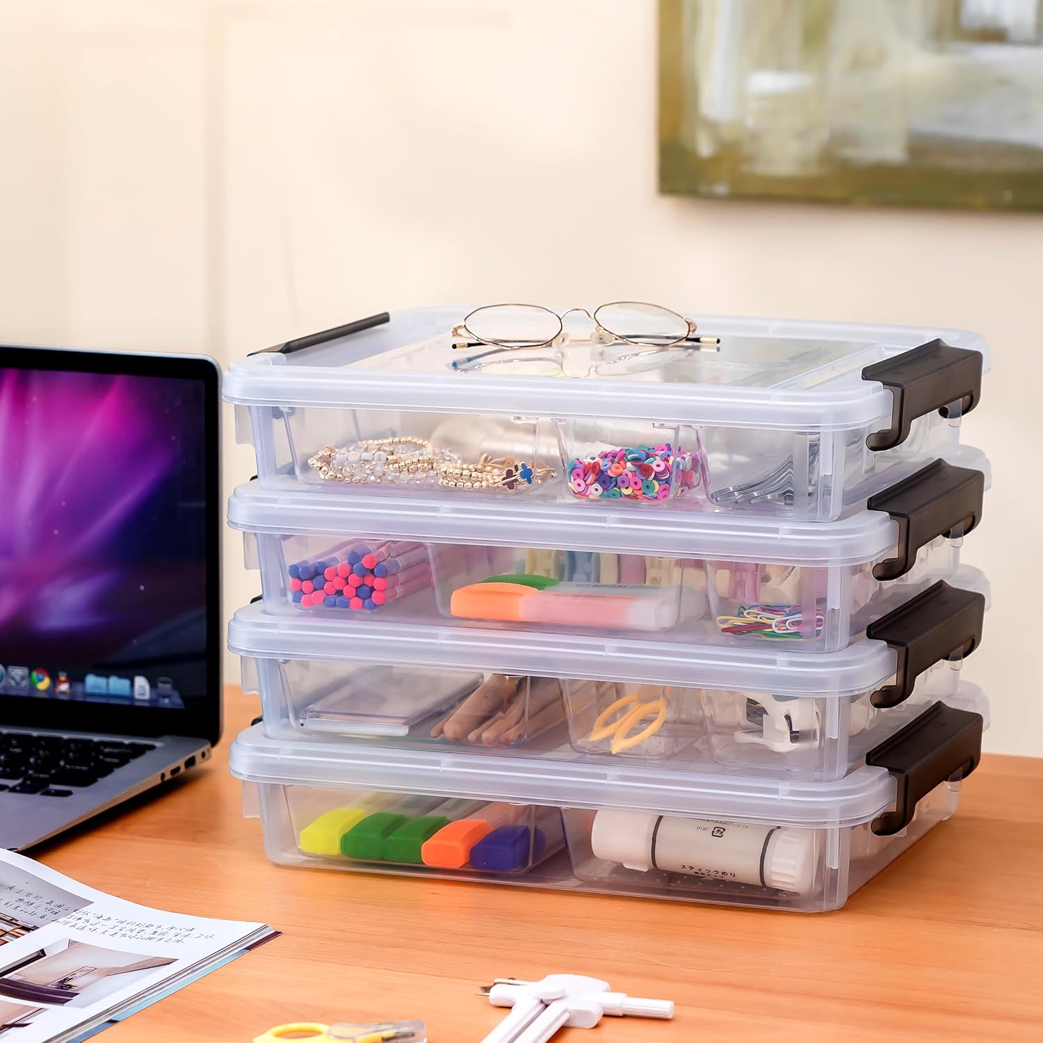 Citylife 4PCS Plastic Storage Bins with Organizer Tray, Stackable Clear File Box, Versatile Craft Storage for Office, Kitchen, Bathroom and School Supplies, 24-pack