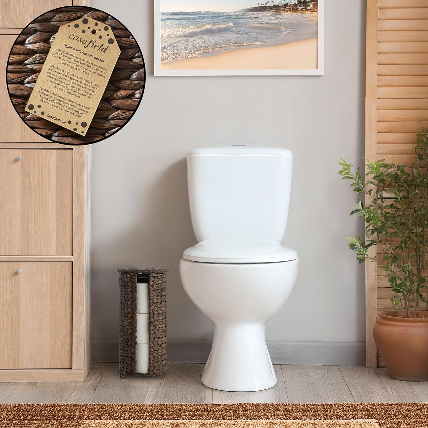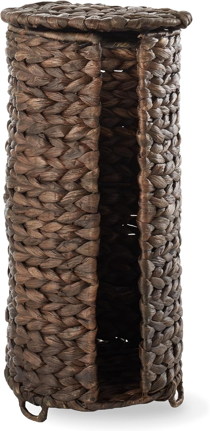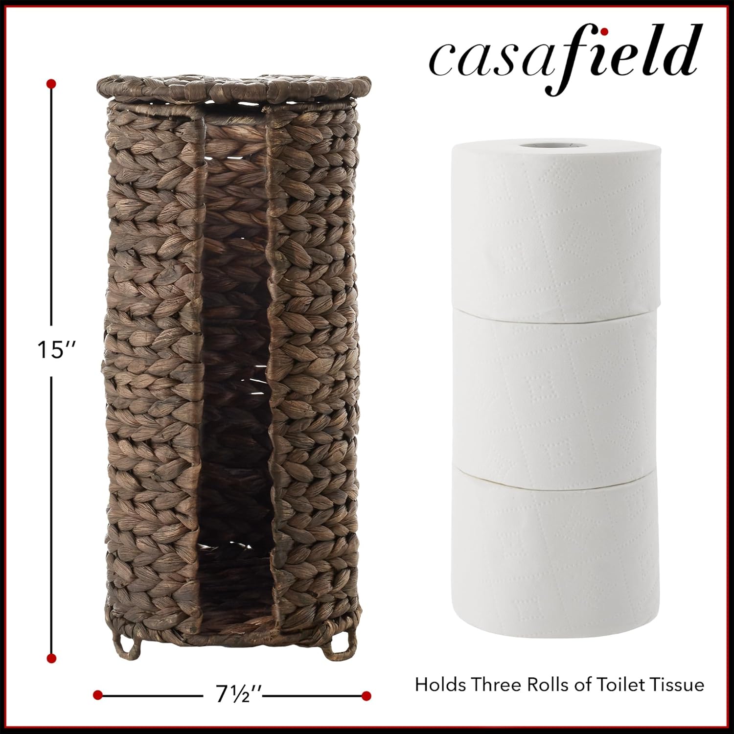 Casafield Free Standing Toilet Paper Storage Roll Holder with Lid - Espresso, Fits 3 Rolls, Water Hyacinth Bath Tissue Organizer for Bathroom