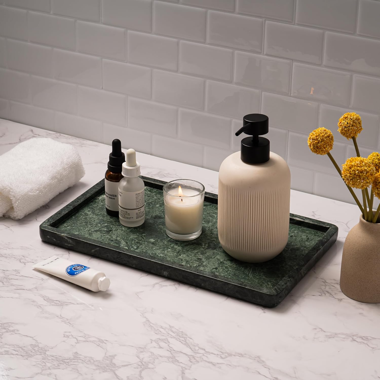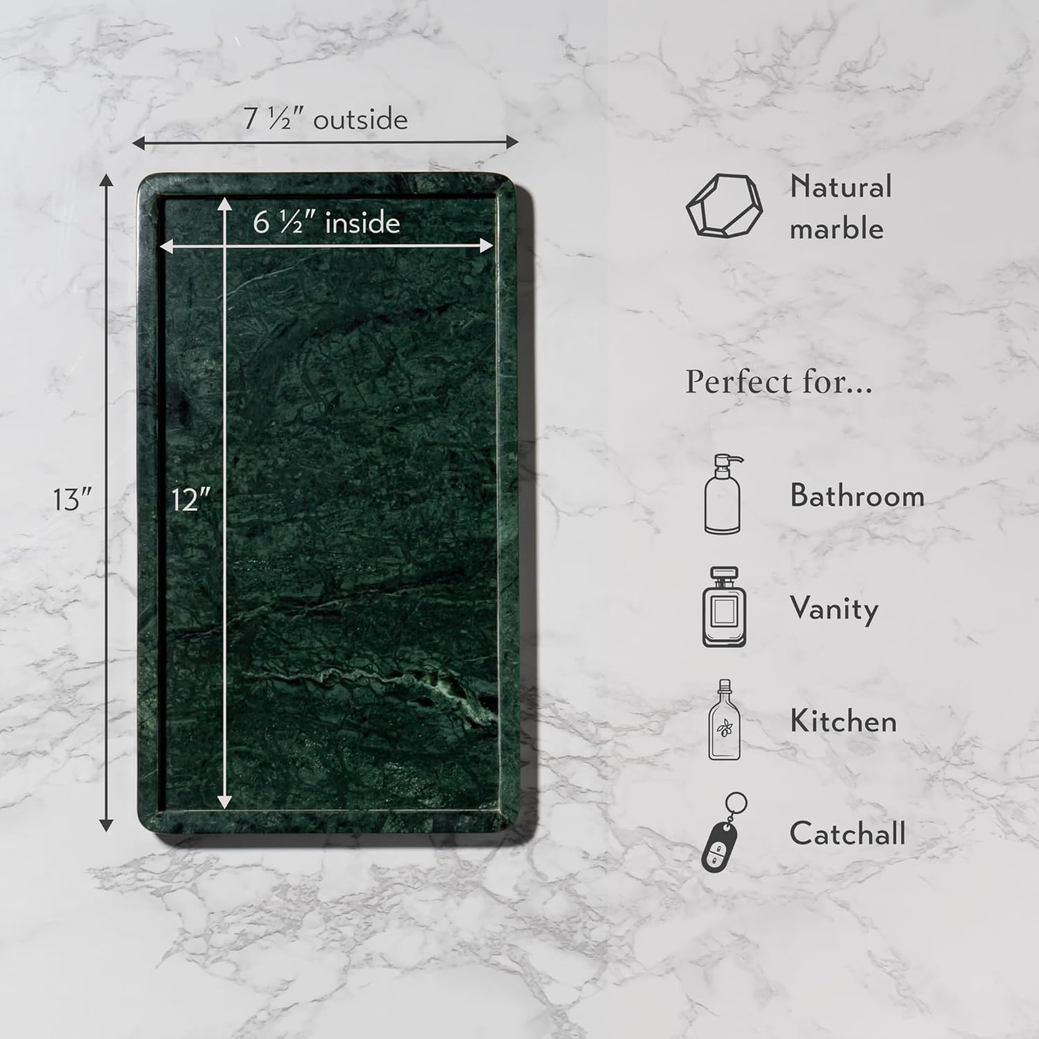 Cork & Mill Green Marble Tray for Bathroom Countertop, Kitchen Counter, or Catchall - 13" x 7½" Large Vanity Tray for Skincare or Perfume - Handcrafted Natural Marble Stone Organizer