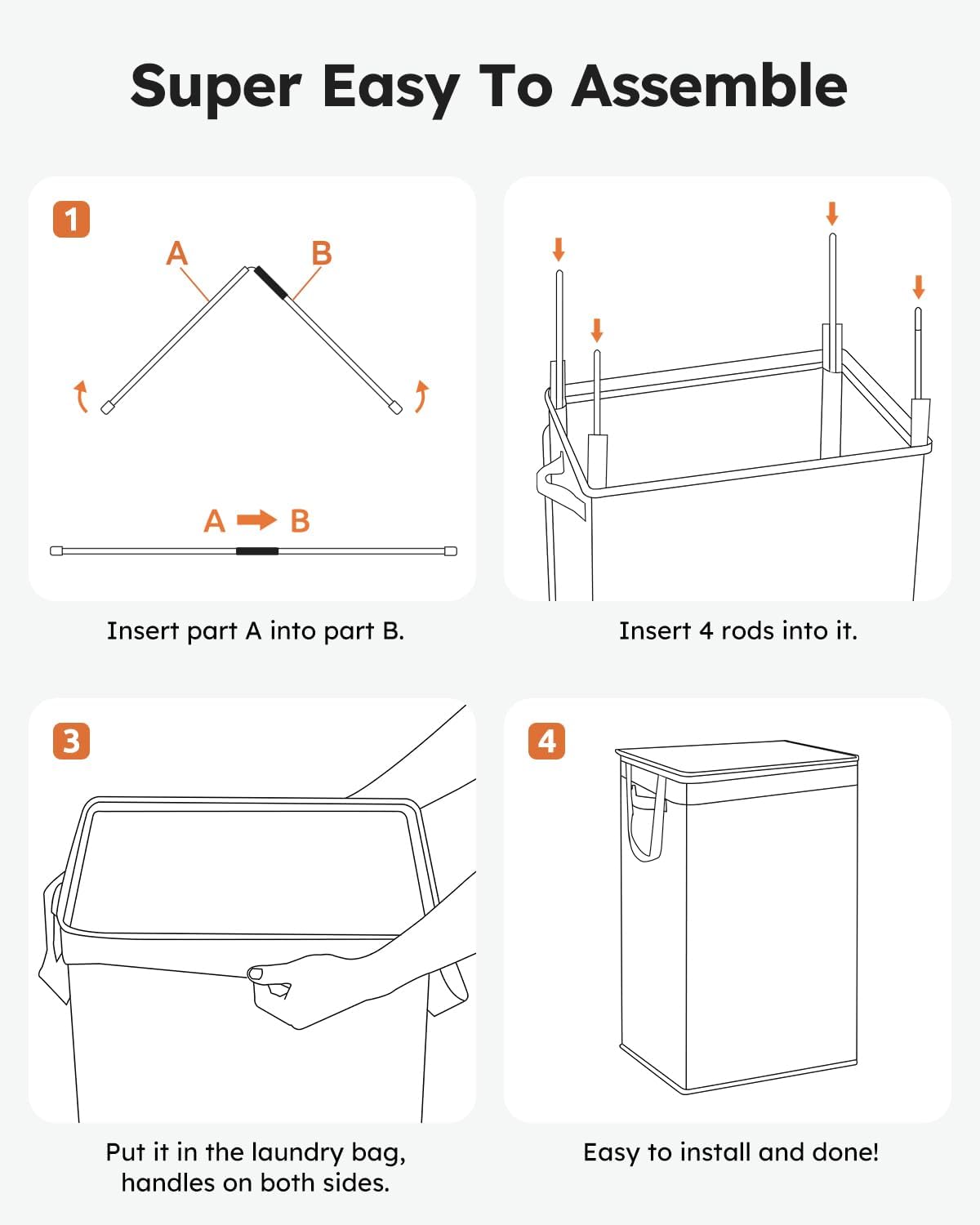 - 【Easy to Install and Foldable】This clothes basket with detailed installation instructions, just insert 4 support rods into the fixed tube, you can complete the collapsible laundry basket installation in 1 minute, which is simple and convenient. In addition, it can be folded up and stored in a cabinet when idle, reducing the space occupation.