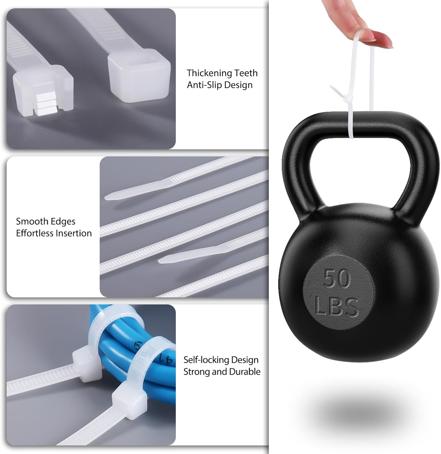 - 【High Quality】 Zip ties heavy duty are made of high-quality industrial strength 6/6 nylon, sturdy and durable, up to 50 pounds tensile strength. Heavy duty zip ties can withstand harsh weather conditions, perfect for indoor and outdoor use.