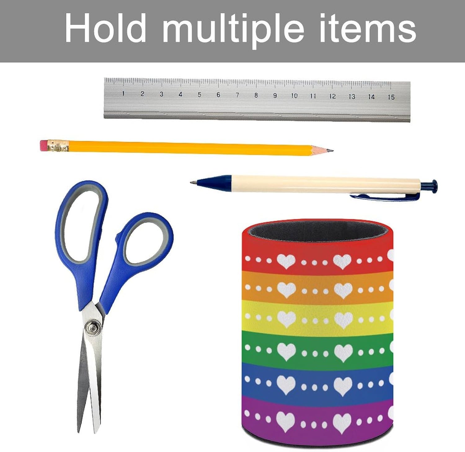 LGBT Rainbow Pride Flag Pen Holder Pencil Organizer Cute Pencil Cup Desk Decor Makeup Brush Holder PU Multifunctional Office Suppliesfor Home Classroom School