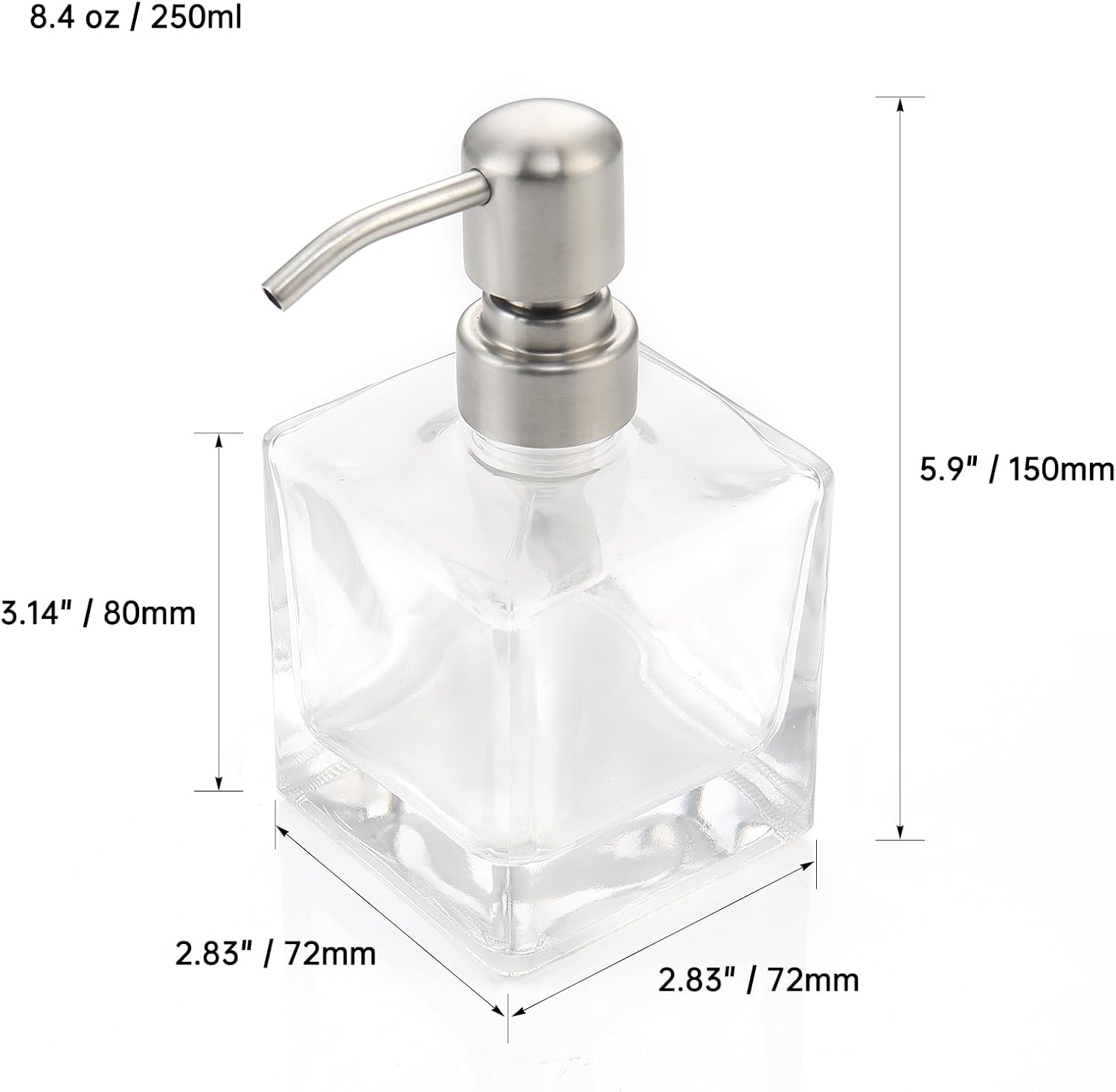 - Liquid Soap Dispenser Bathroom: Cube glass bottle with stainless steel pump, heavy and sturdy