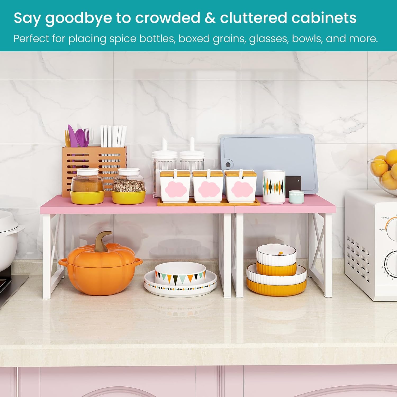 - 【Stackable Storage Design】Our desktop organizer is made up of two adjustable separate pieces that can be configured in various ways to fit your space and preferences. Whether you need a small shelf rack or an extended storage unit, our organizer can be used as a corner stand, desktop monitor stand, countertop shelf, or any other application you can think of.