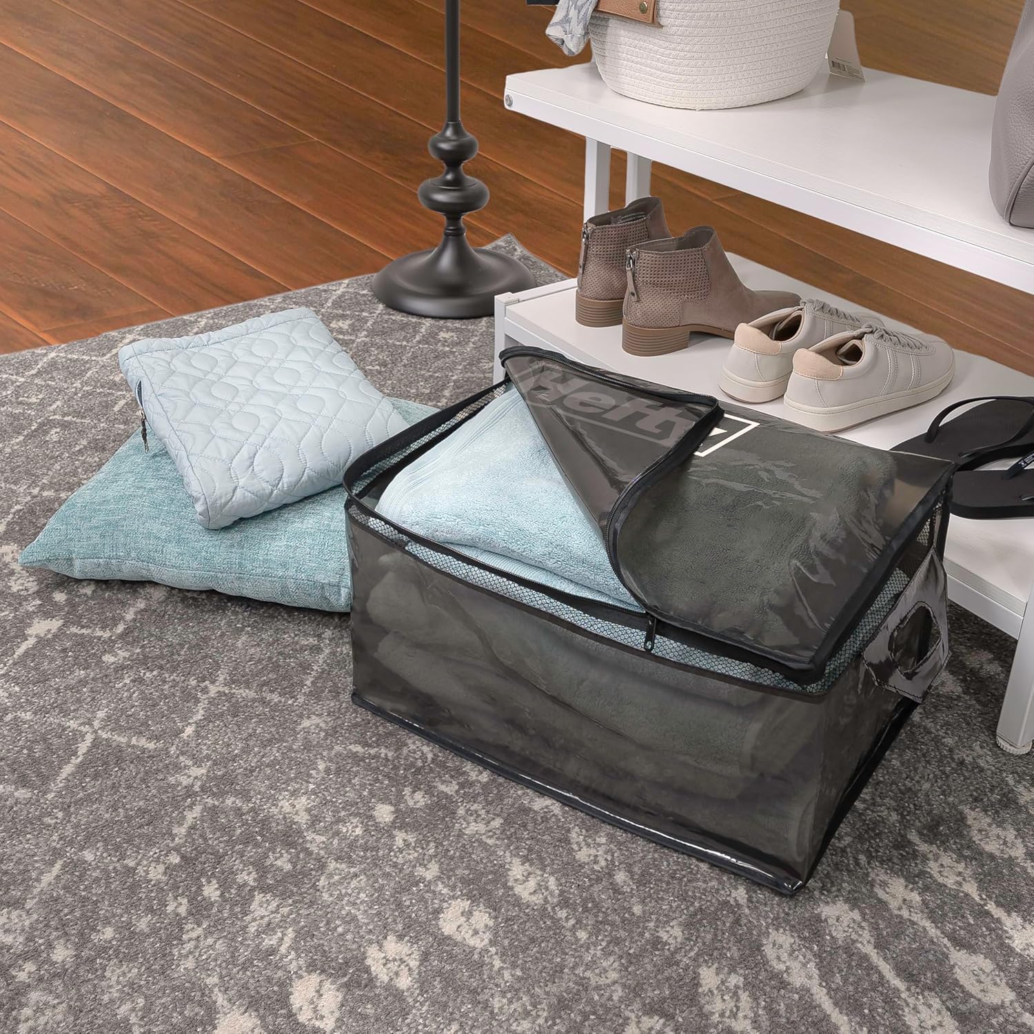 - Durable Double Zip Closure: Equipped with a sturdy double zipper, this storage tote ensures your items are securely stored, making it a reliable choice for organizing your closet storage, blankets and bedroom organization needs